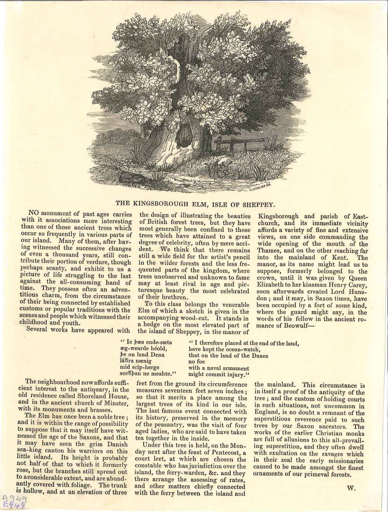 - DescriptionEngraving & history text of the Kingsborough Elm, Isle of Sheppey; extract or reprint from 'The Gentleman's Magazine' of January 1839.