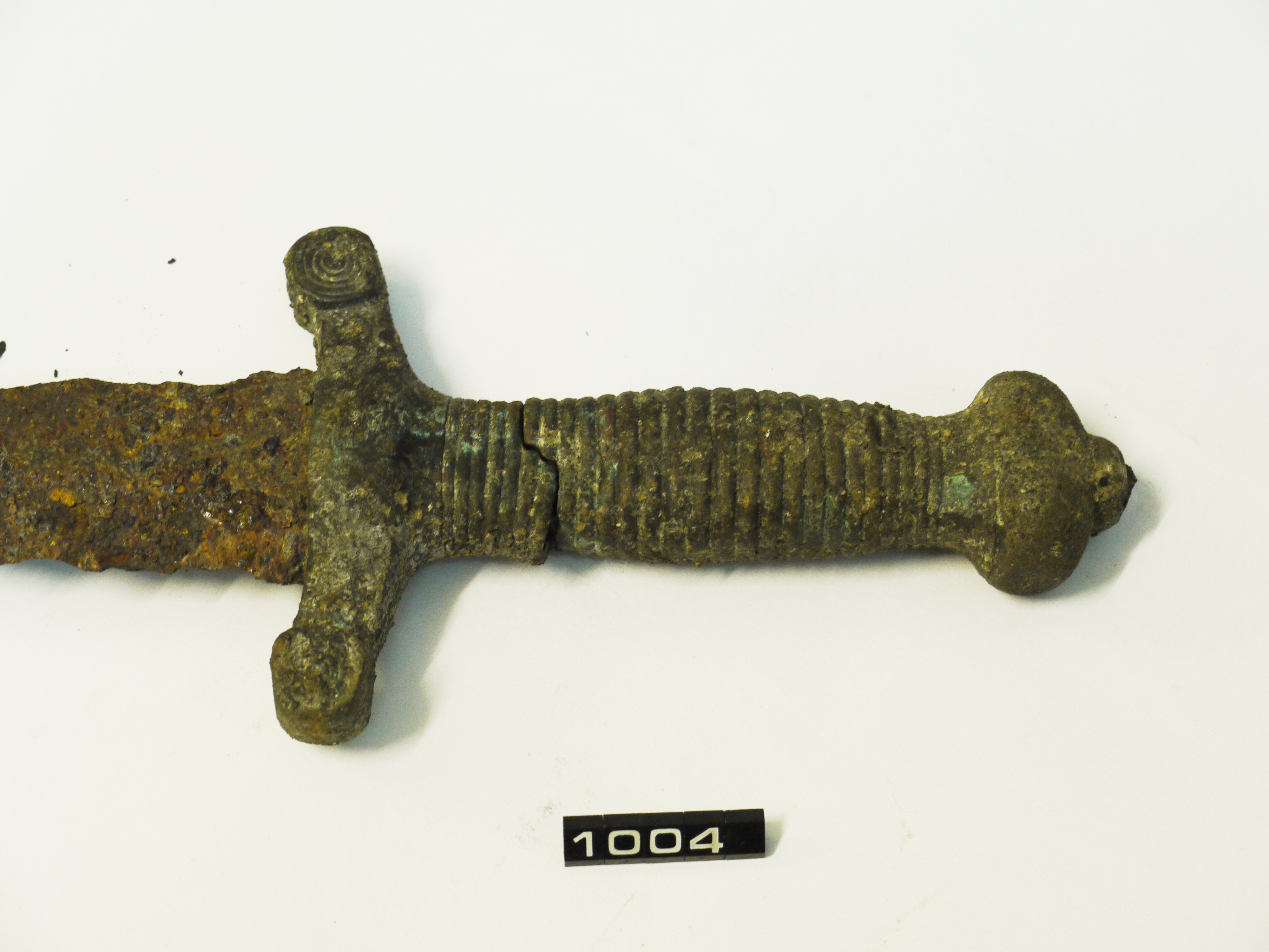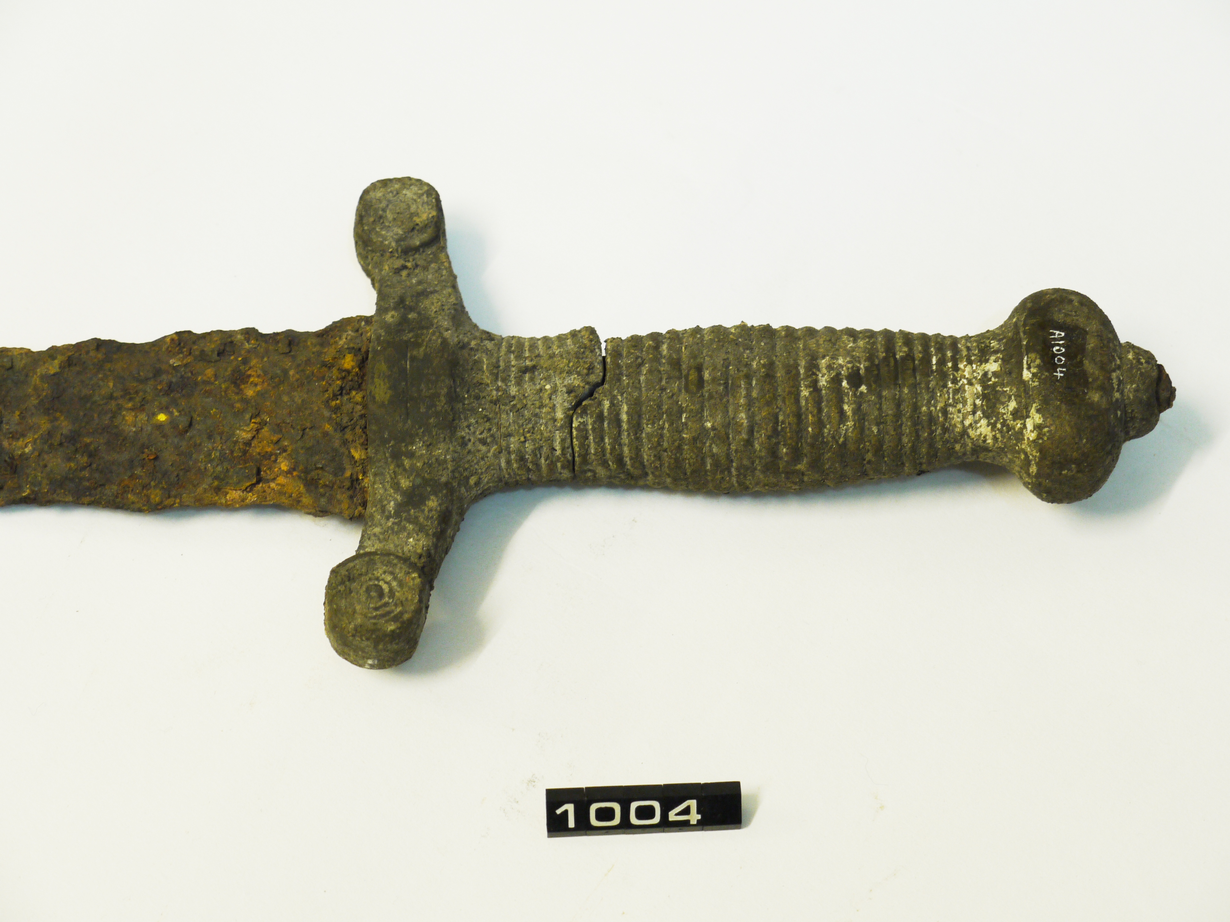 - DescriptionPrivates sword or hanger, Land Transport Corps. Copper alloy hilt, cracked. Blade heavily rusted and incomplete. Surviving blade length 465mm.