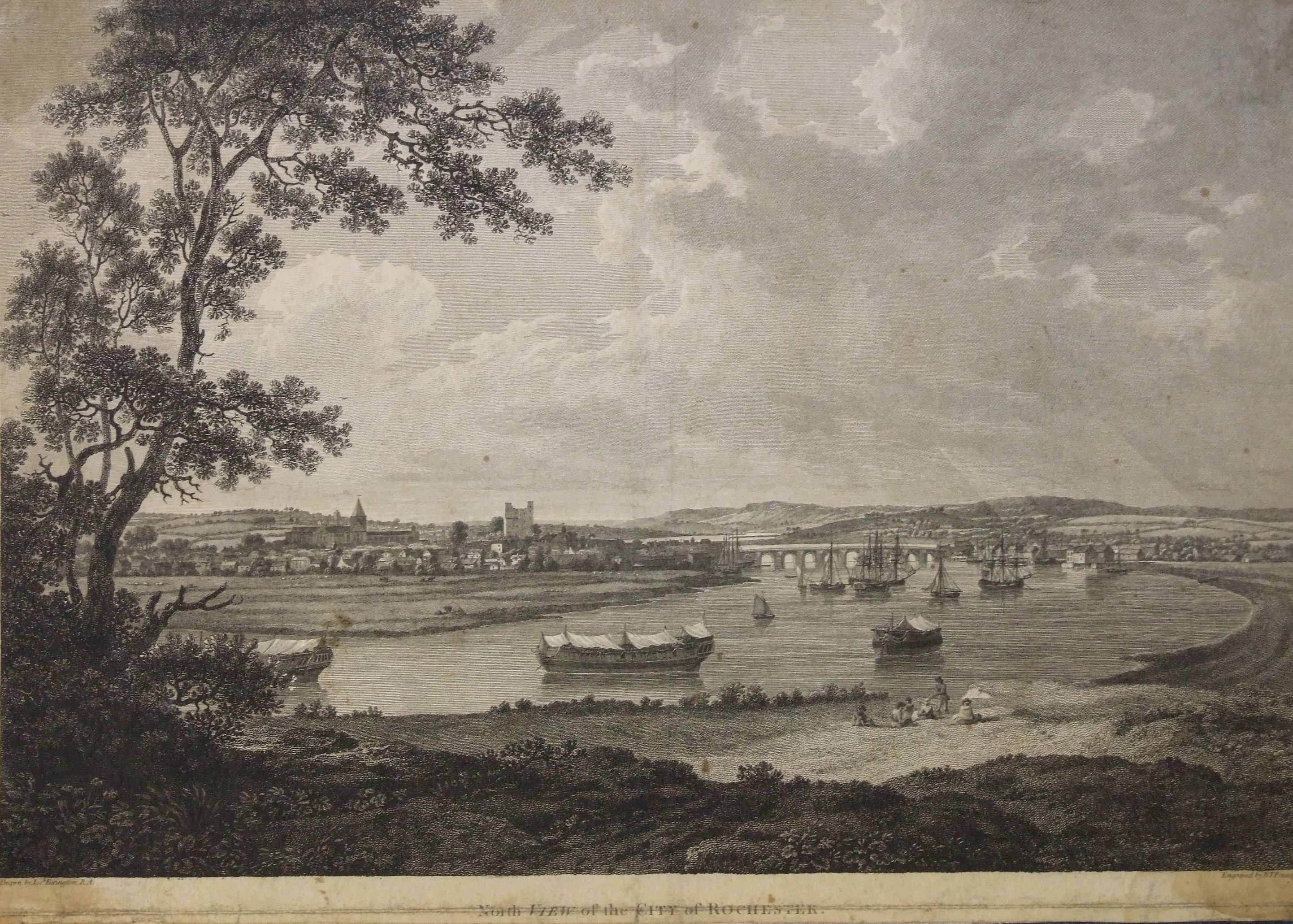 - DescriptionEphemera; print of 'North View of the City of Rochester'; depicts scene of River, castle, cathedral & various sailing vessels, including mastless warships laid up 'in ordinary'; unframed. Two copies.
