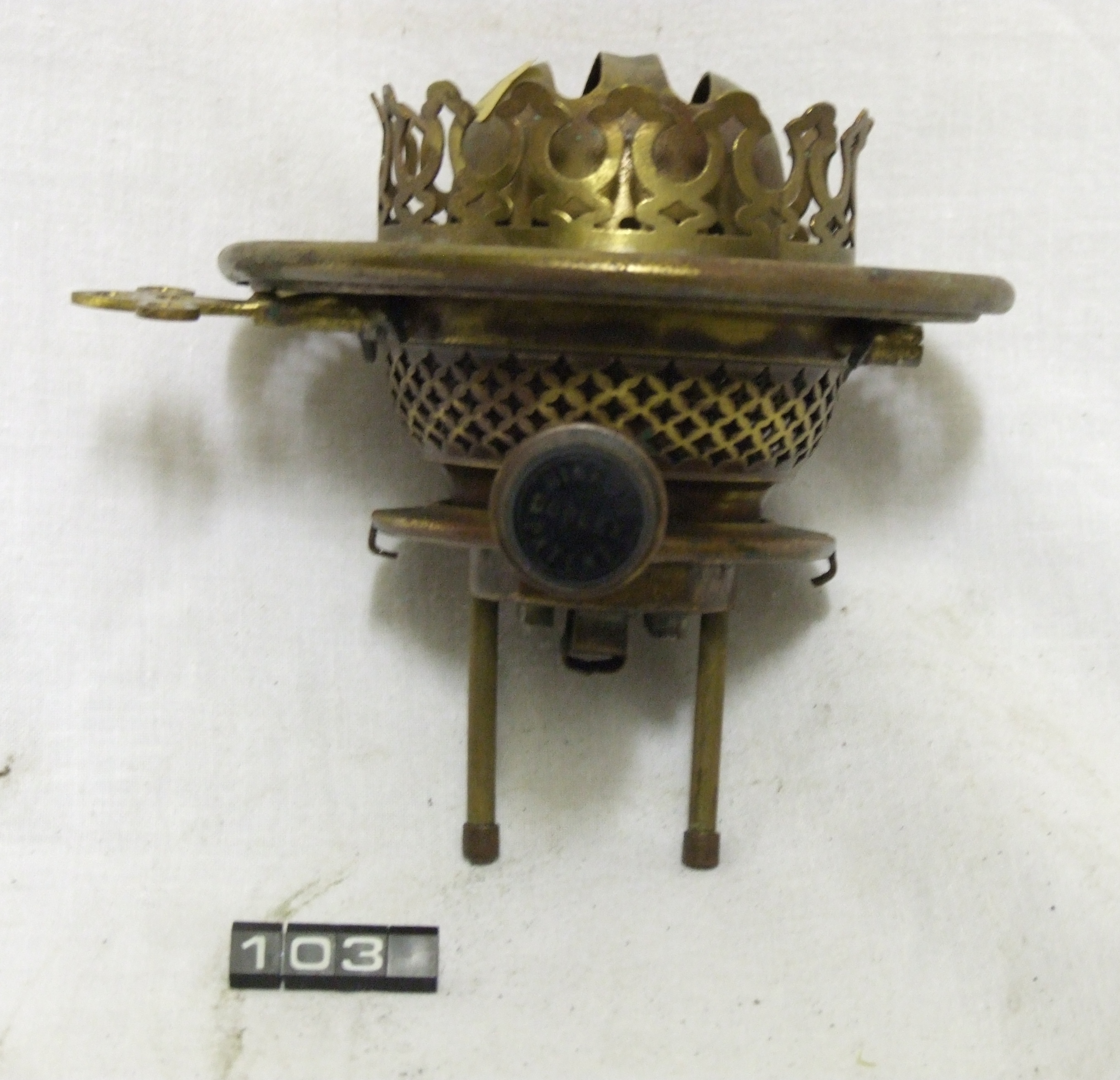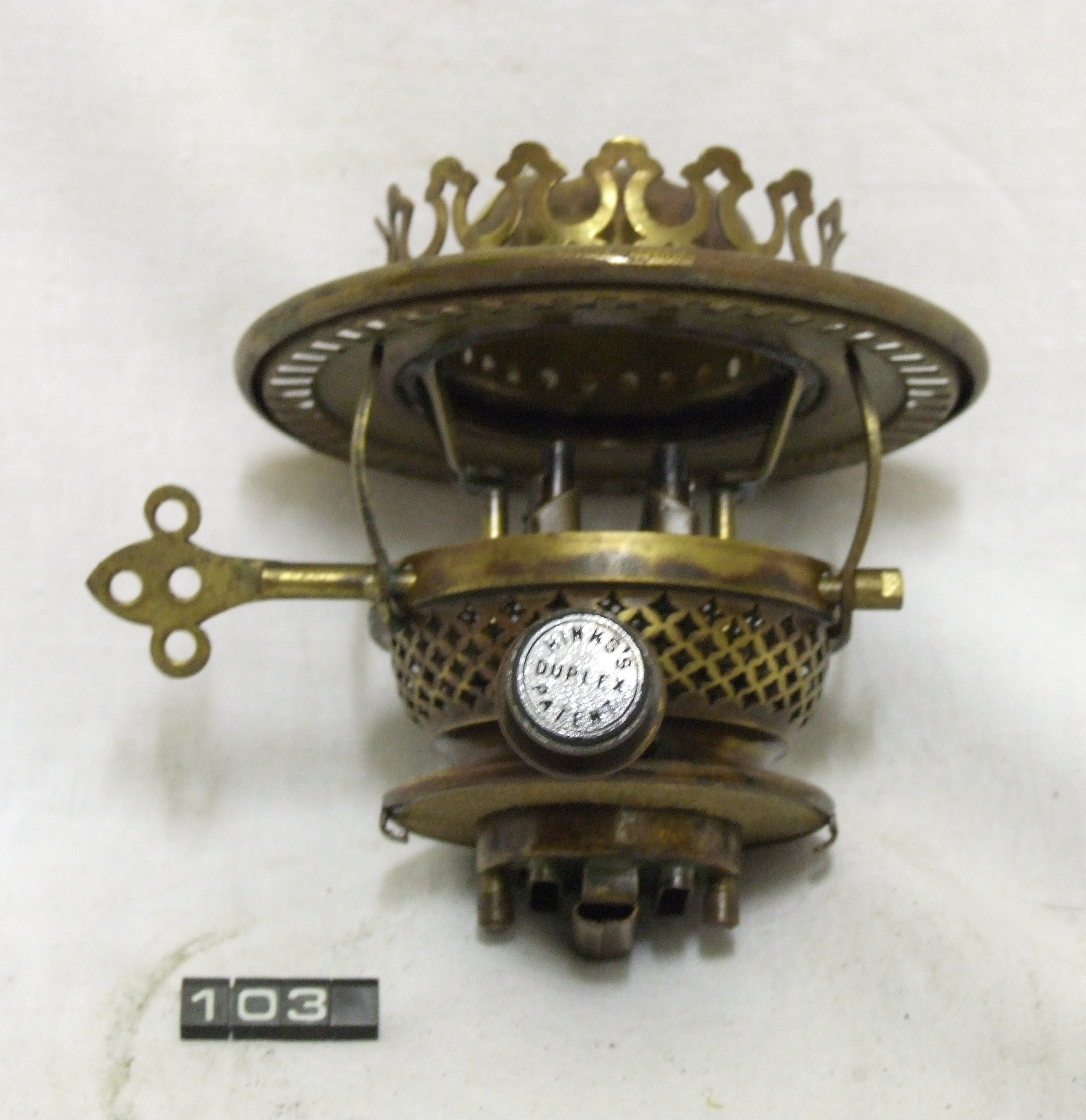 - DescriptionOil lamp burner; Hinks patent No.2 duplex burner, brass; Norris notes that it has 'modified snuffers & lift'; Norris collection.