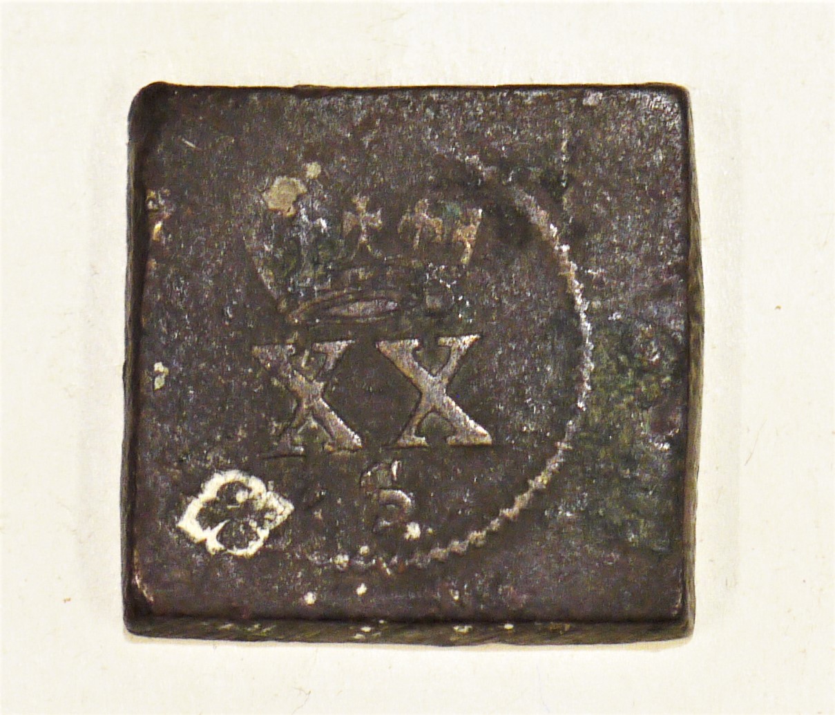 - DescriptionSquare coin weight, moneyer's weight. Obverse: bust of bearded male with laurel wreath within a circle (James I)'; Reverse: a crowned 'XXS.' within a circle. Used to weigh a sovereign ( twenty shillings gold coin).