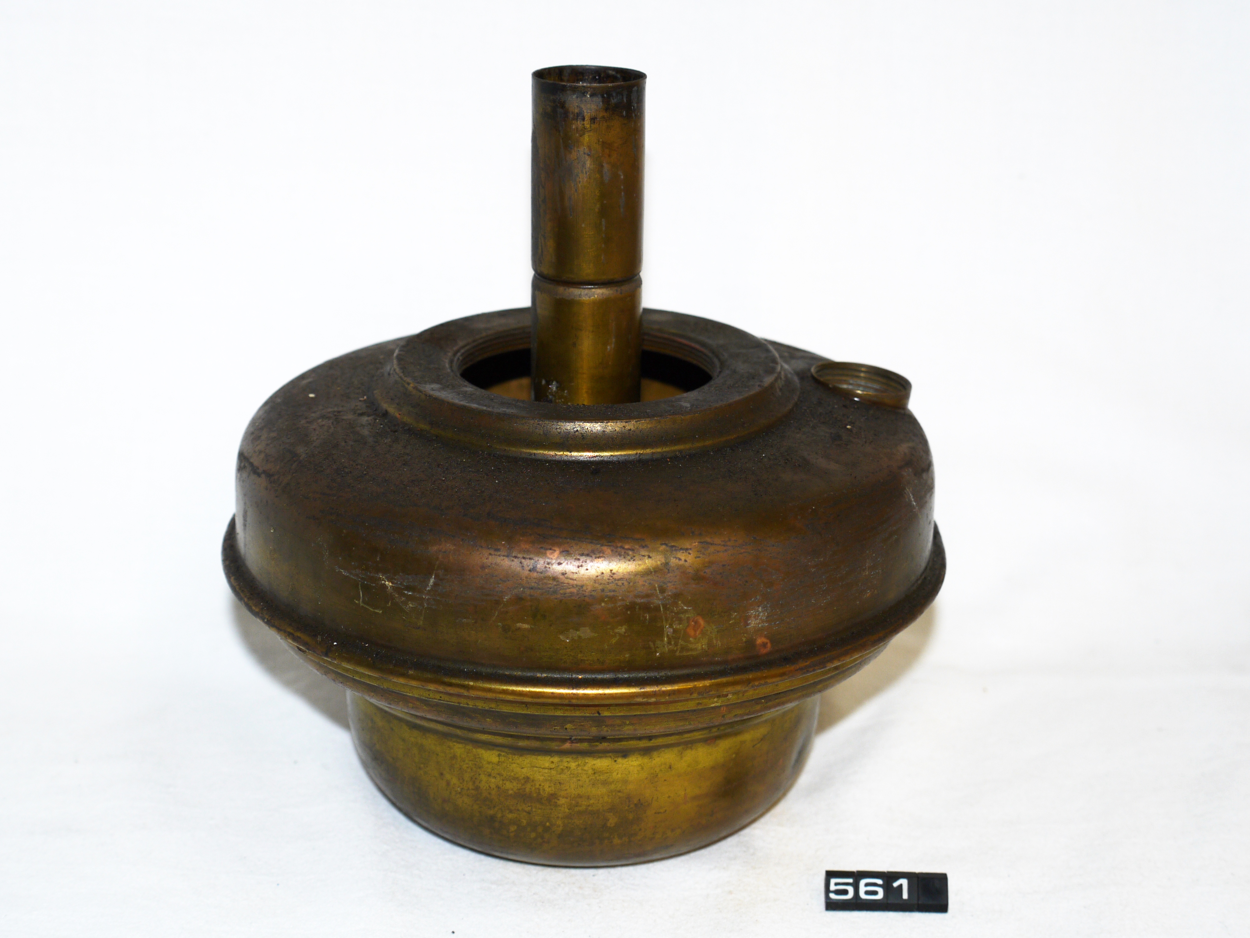 - DescriptionOil lamp fount; brass-plated fount from a centre draught burner (no burner fitted); filler cap missing; the probably belongs to a suspension lamp (Norris332); bottom of fount is threaded for fitting to lamp frame; Norris collection.