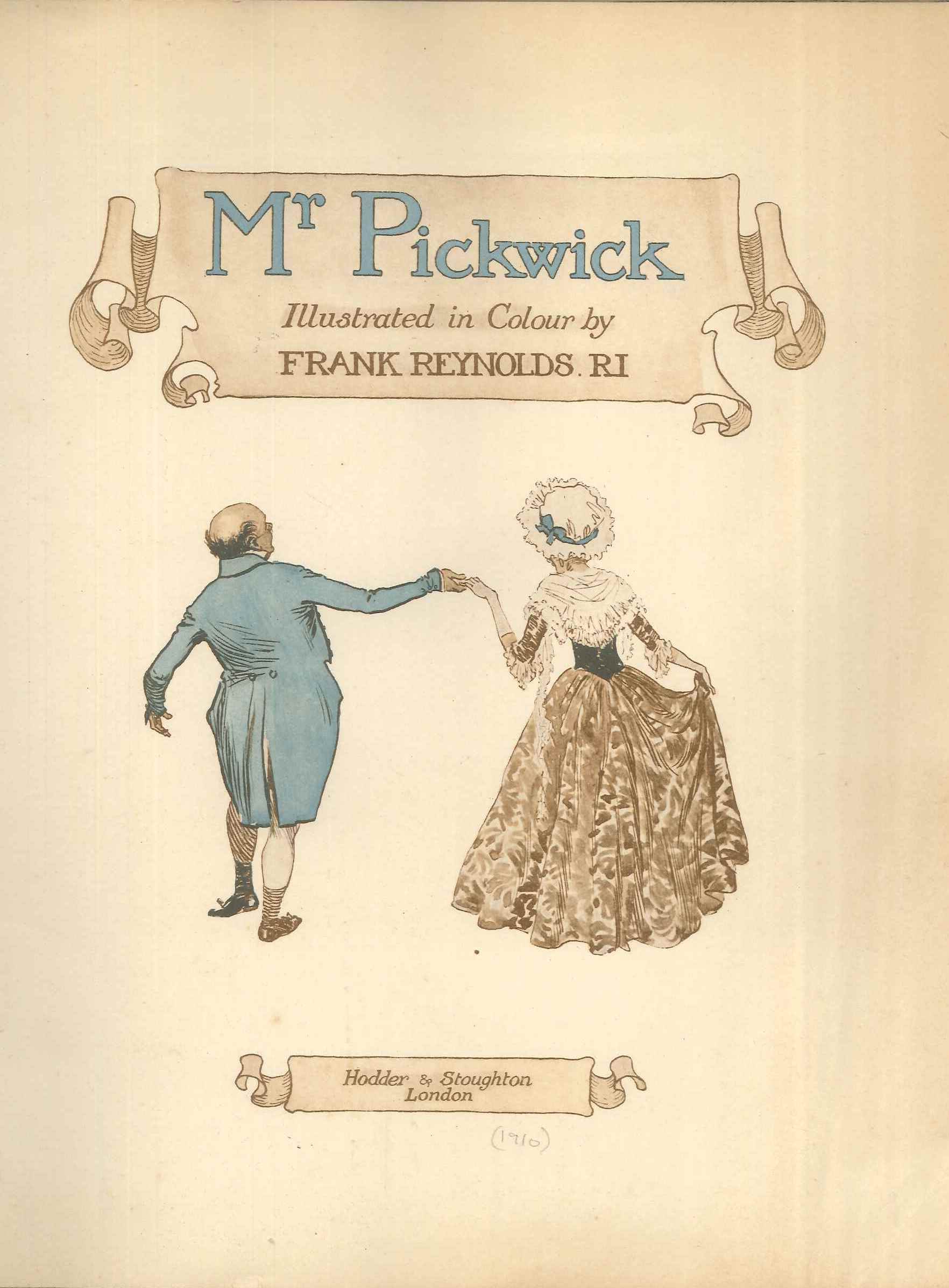 - DescriptionColour lithographic print of a scene from 'Pickwick Papers' by Charles Dickens; 'Sam Weller'; from the book 'Mr Pickwick Illustrated in Colour' by Frank Reynolds RI, published by Hodder & Stoughton, 1910; this copy of the book has lost its cover & binding, and is effectively a collection of 24 prints taken from Reynolds paintings.