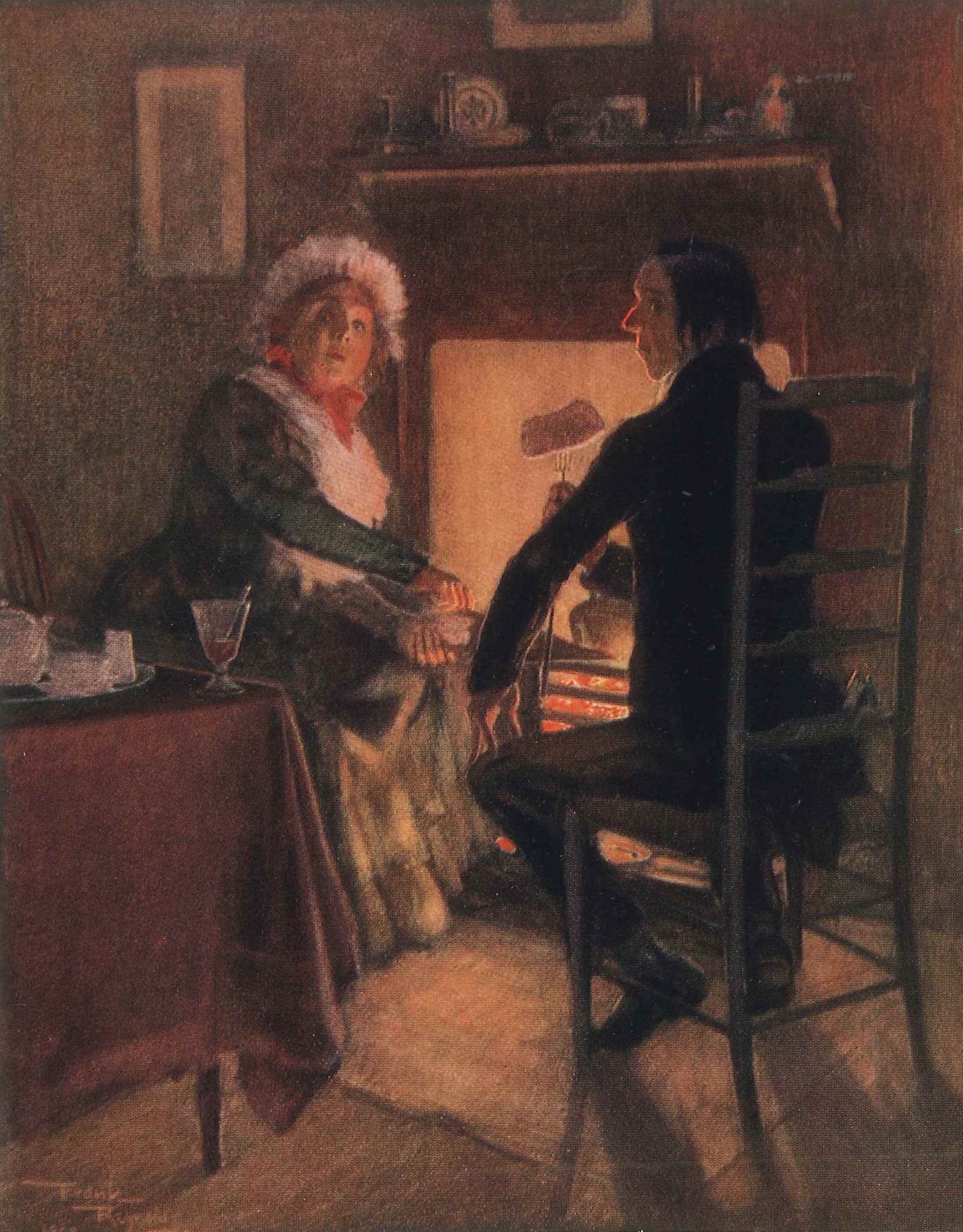 - DescriptionColour lithographic print of a scene from 'Pickwick Papers' by Charles Dickens; 'Mrs Weller and Mr Stiggins'; from the book 'Mr Pickwick Illustrated in Colour' by Frank Reynolds RI, published by Hodder & Stoughton, 1910; this copy of the book has lost its cover & binding, and is effectively a collection of 24 prints taken from Reynolds paintings.