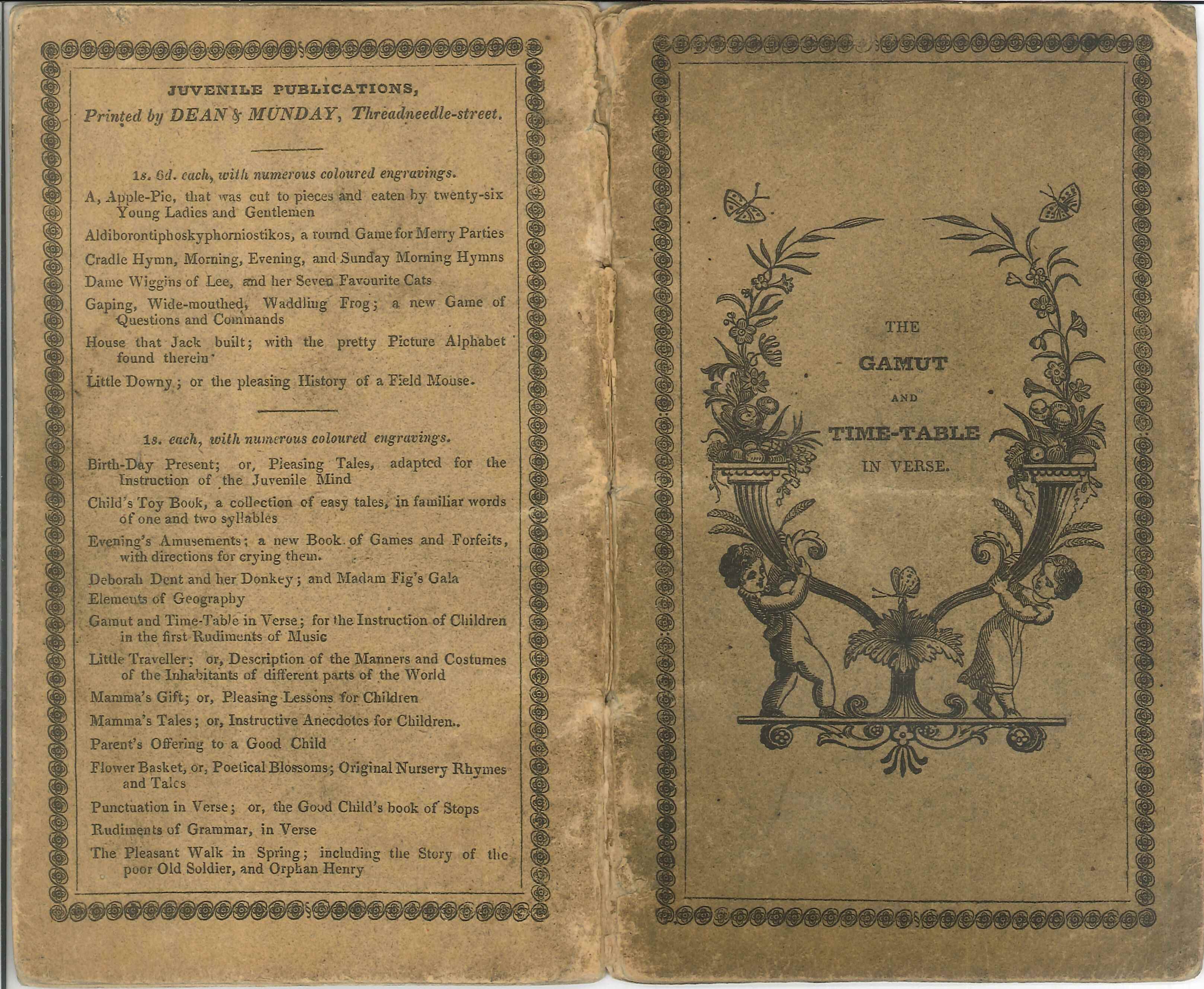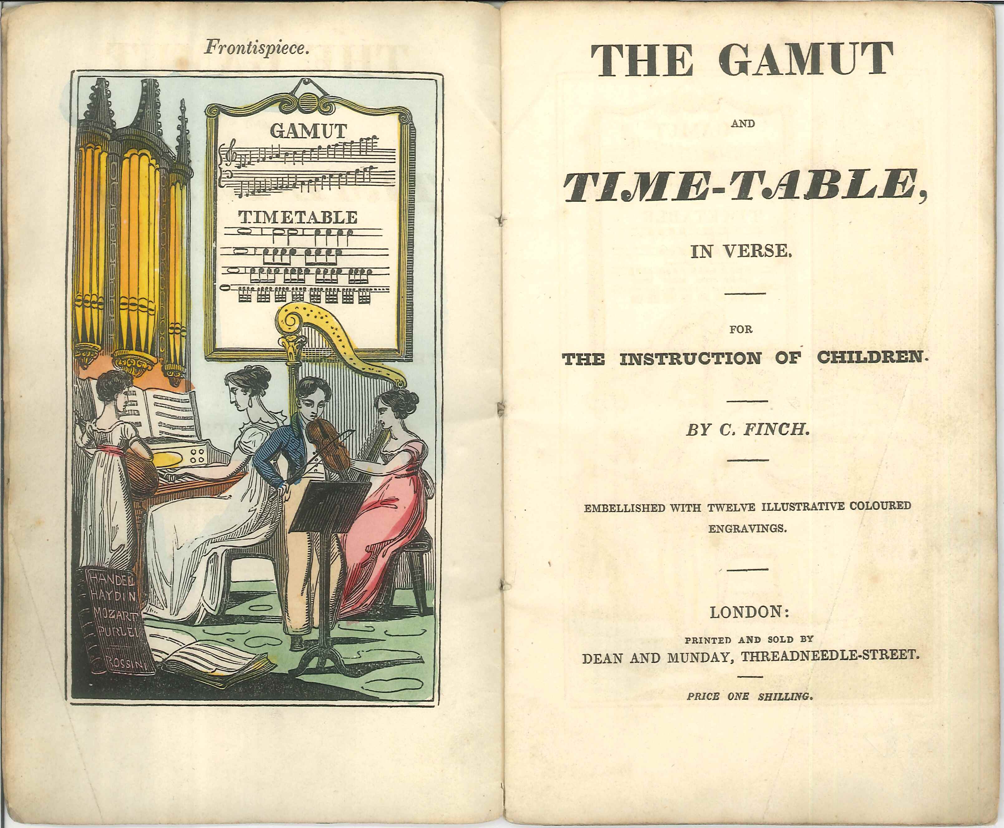 - DescriptionEphemera; printed child's booklet, 'The Gamut and Time-Table in Verse', by C Finch; 12 coloured engraved images; 35 numbered pages, bound with thread.