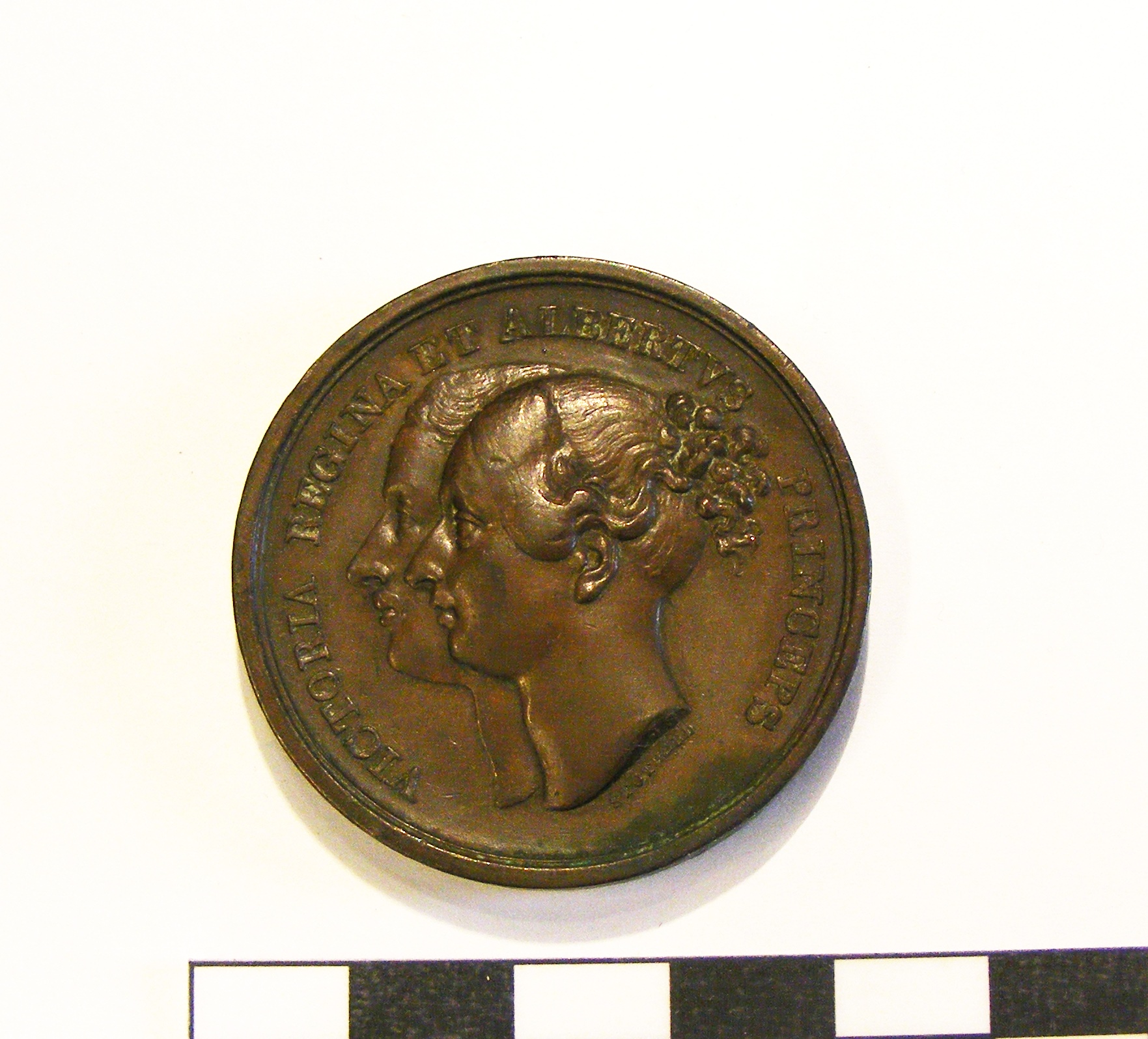 - DescriptionCommemorative medallion of Queen Victoria celebrating her marriage to Prince Albert in November 1840; obverse shows conjoined bust of Victoria & Albert; reverse has date & motto within an oak leaf wreath; some minor corrosion.