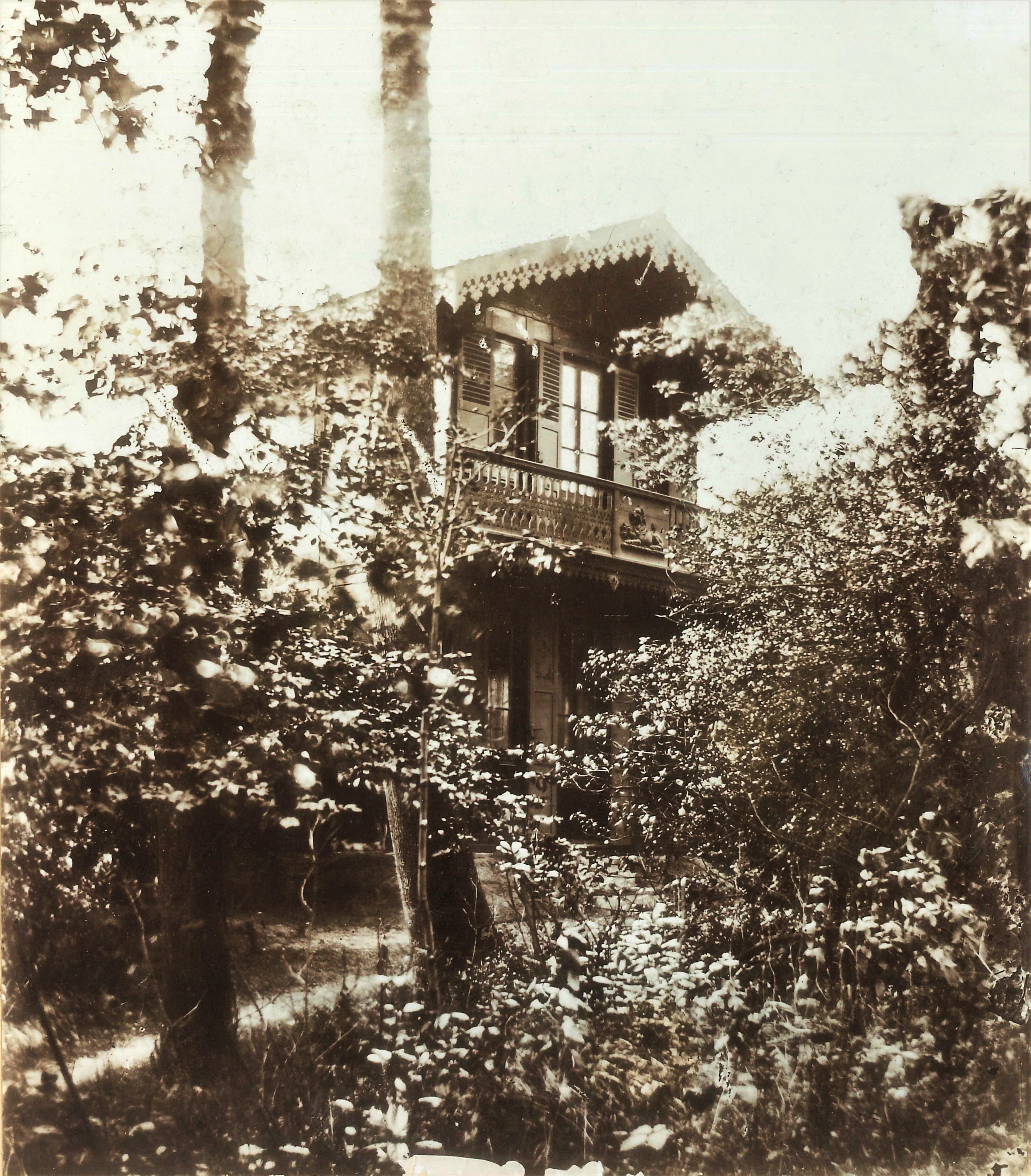 - DescriptionPhotograph of the chalet given to Charles Dickens in 1864; originally located at Gad's Hill, moved to Cobham Park, now at Eastgate House; this image shows the chalet in The Wilderness at Gad's Hill.