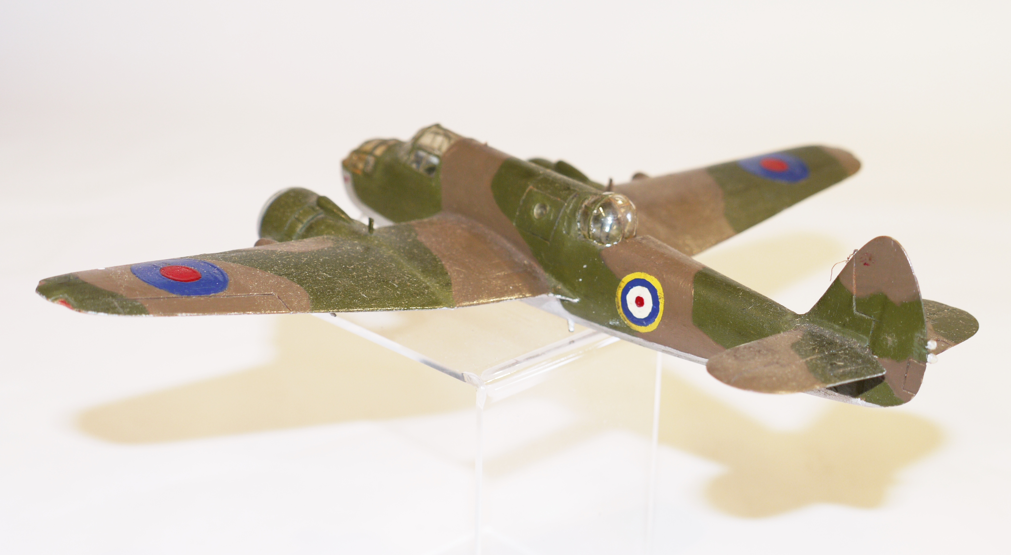 Model aircraft; accurate scale model of a WW2 Bristol Beaufort twin-engined monoplane torpedo bomber. Designed by the Bristol Aeroplane Company, at least 1180 Beauforts were built by Bristol and other British manufacturers. Although designed as a torpedo bomber it was often used as a medium day bomber. Its first flight was on 15 October 1938, it was brought into service in 1939 and retired in 1944.