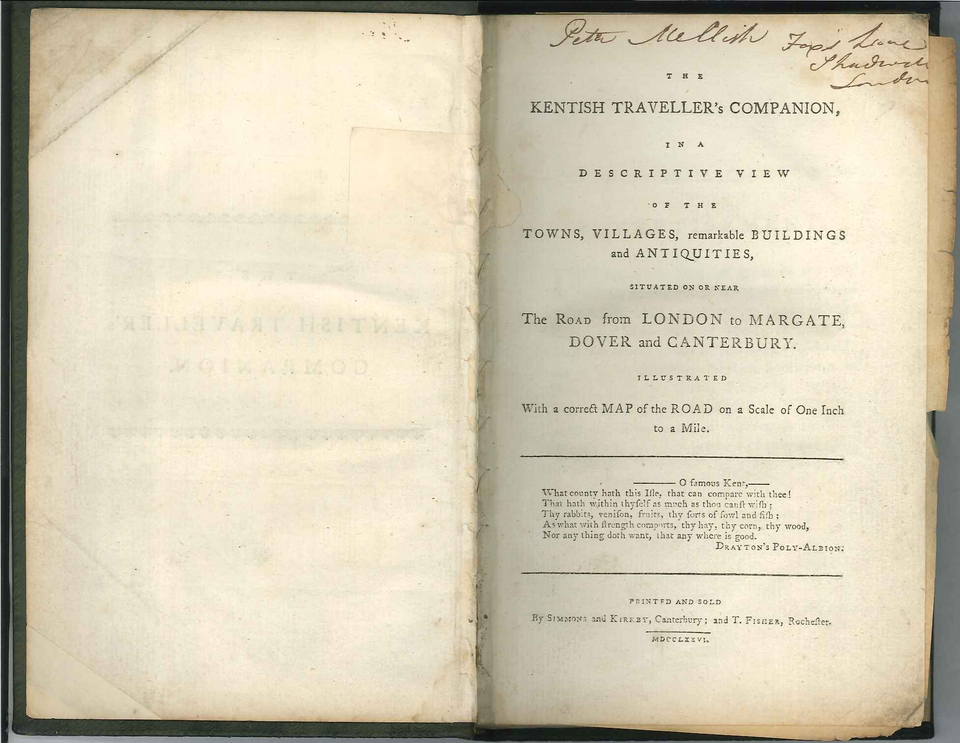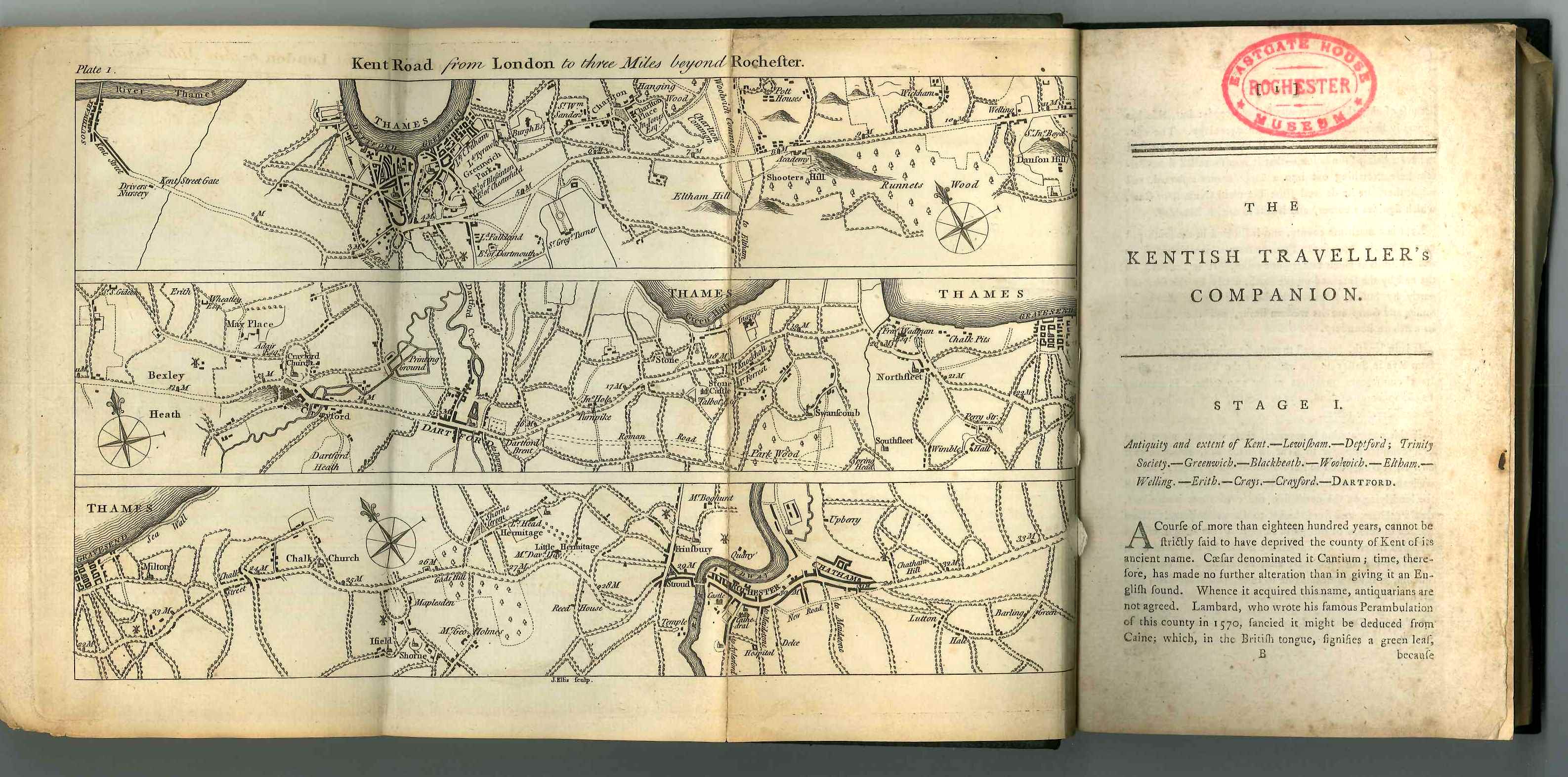 - Descriptionephemera; book 'The Kentish Traveller's Companion'; 1776 edition of book with descriptions and maps of journeys from London to Margate, Dover and Canterbury.