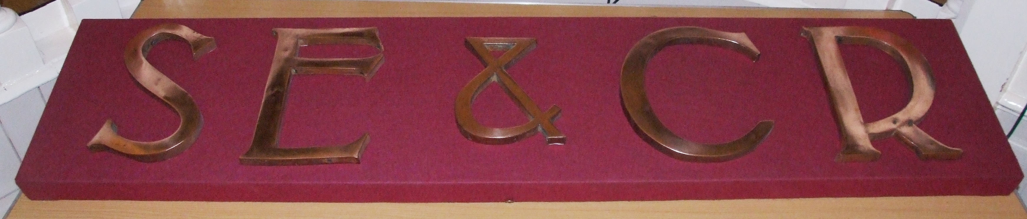 - DescriptionIndividual letter & numbers from the sign at the demolished Rochester Bridge Station, formerly stood on the Strood side of Rochester Bridge; individual copper alloy characters 'S E & C R 1908' ('South Eastern & Chatham Railway'); see also A13126 for image of the station.