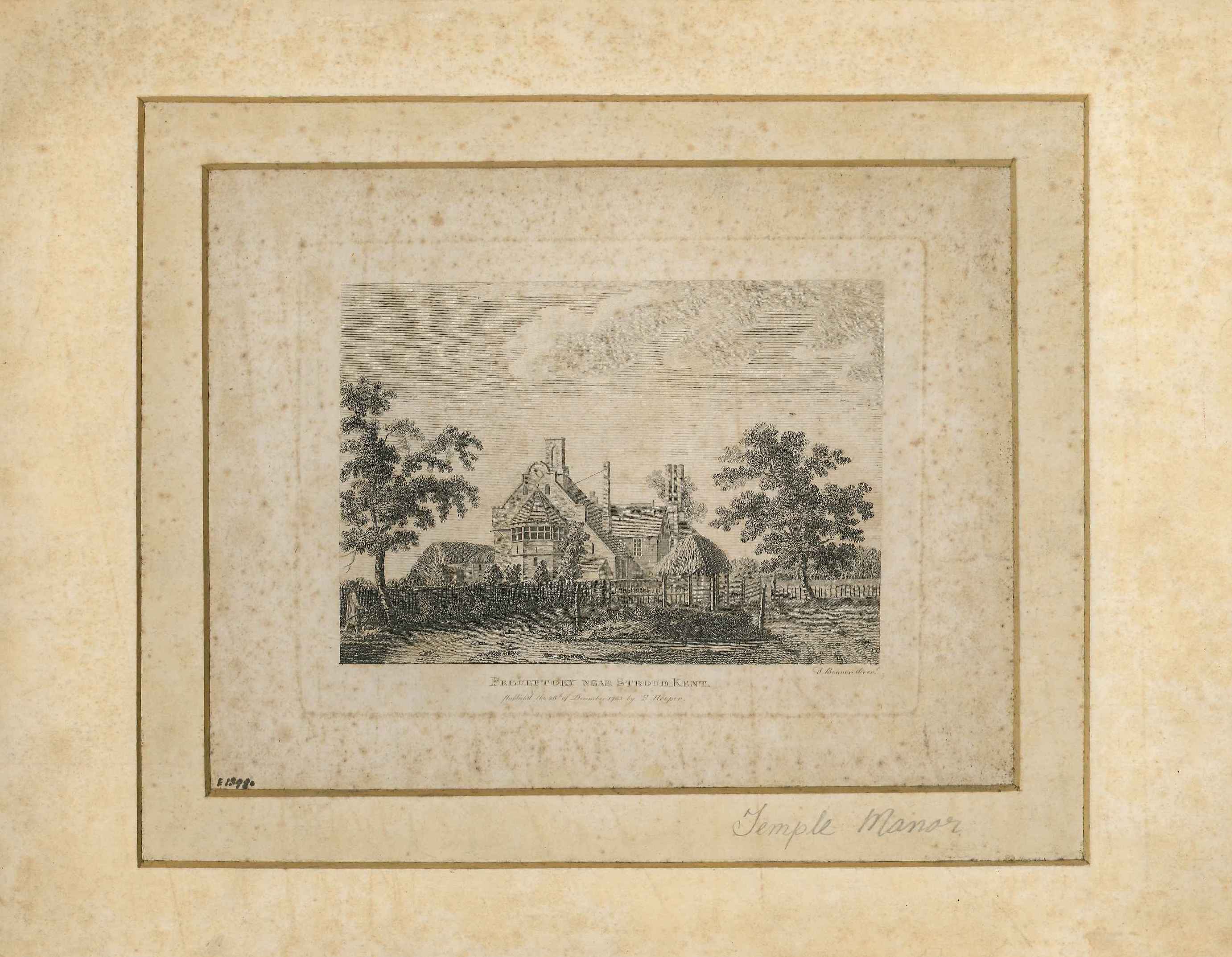 - DescriptionPrint of a view of Temple Manor farm in 1783; shows the remains of a preceptory of the Knights Templars converted into a farmhouse; published in Francis Grose's Antiquities of England and Wales, 1786; slight foxing overall.