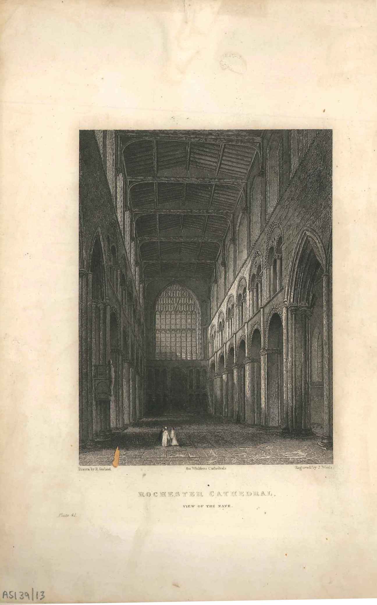 - DescriptionPrint of a detailed view of the interior of the nave of Rochester cathedral in 1836; published for the book 'Winkle's Cathedral Churches of England & Wales' (1836-38). Bound in a large volume.