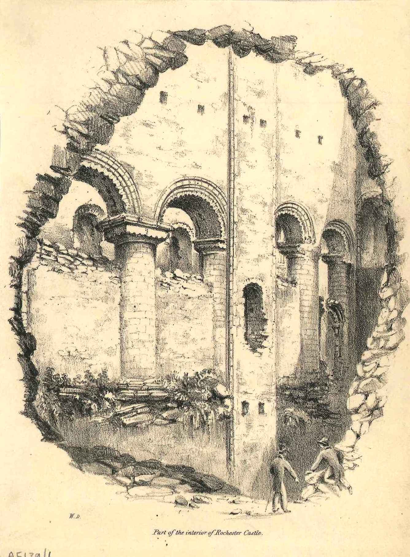 - DescriptionLithographic print of Rochester castle keep interior; shows Norman 'dogtooth' arches, 2 figures in the foreground. Bound in a large volume. Produced for 'Sketches of the Picturesque in Rochester and its Vicinity', published by Dadson in 1825.