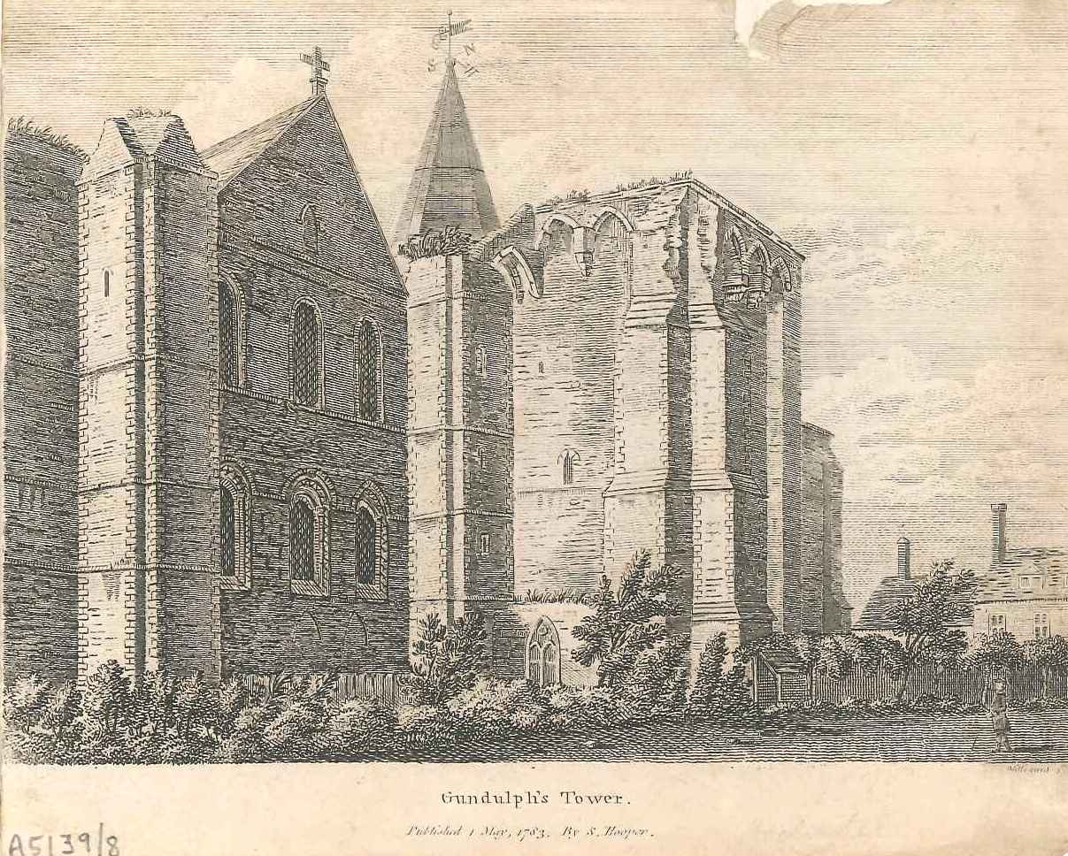 - DescriptionPrint of a view of Gundulf's tower, Rochester cathedral in 1783; shows slightly overgrown tower; taken from a book. Possibly published in Francis Grose's Antiquities of England and Wales, 1786. Bound in a large volume.