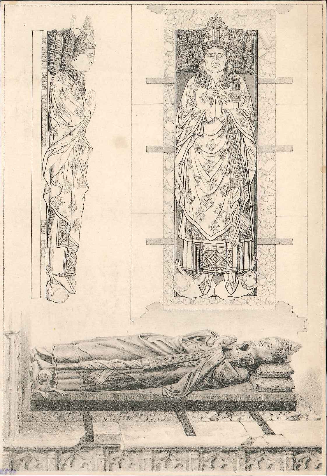 - DescriptionPrint of details on the tomb of Bishop John De Sheppey in Rochester cathedral; shows a plan, side elevation & oblique sketch of the effigy; produced shortly after its discovery in 1825. Josiah Taylor was a stationer & printer active at High Holborn 1798-1834.