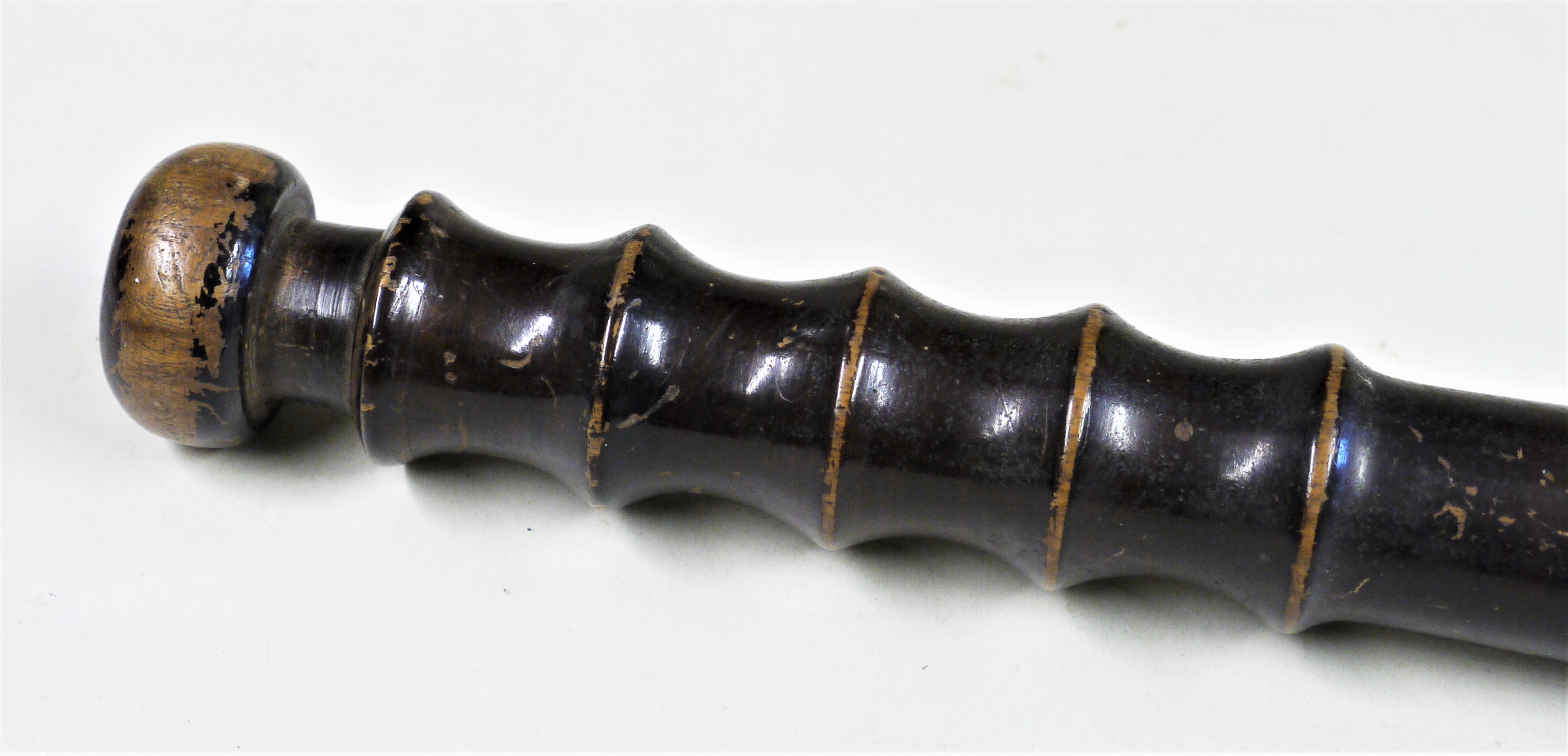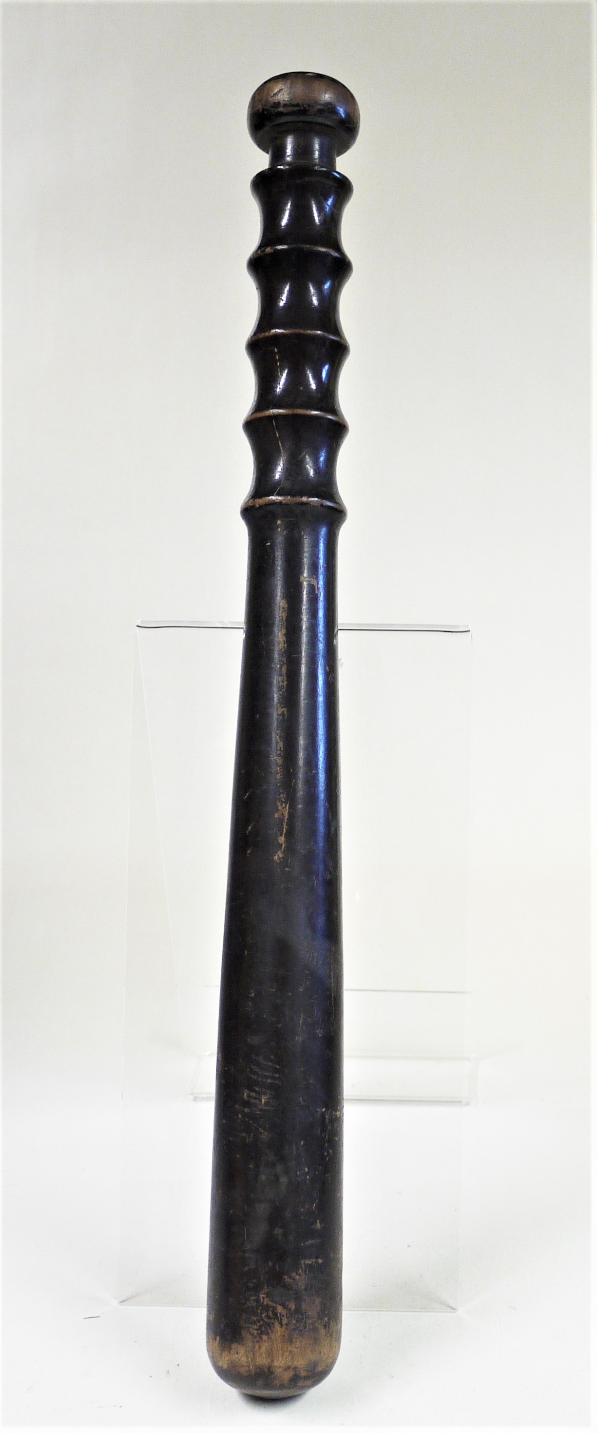 Simple wooden truncheon with carved grip. 'found in a local house some years ago'
