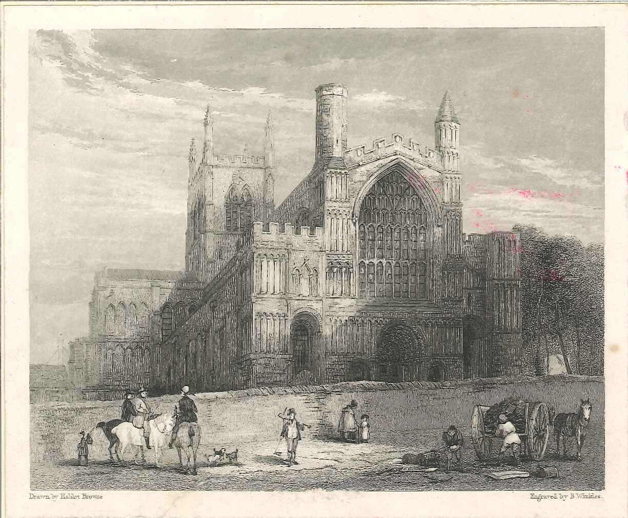 - DescriptionPrint of a view of the west end of Rochester cathedral in circa 1835; shows post-1826 tower, various passers-by including horsemen; possibly published for the book 'Winkle's Cathedral Churches of England & Wales' (1836-38).