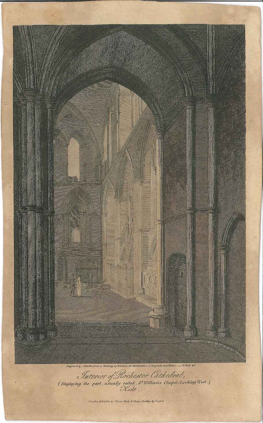 - DescriptionPrint of a detailed view of the interior of the nave of Rochester cathedral in circa 1806; published for the book 'Beauties of England & Wales'. Mounted on card.