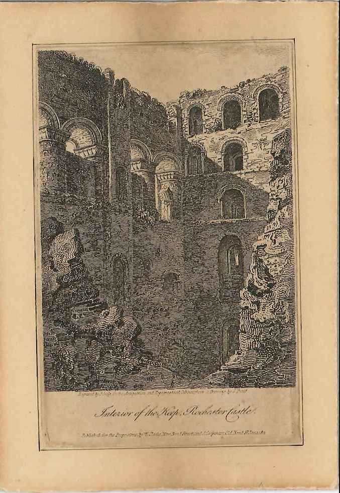 - DescriptionPrint of a detailed view of Rochester castle keep interior; shows various internal walls & arches.