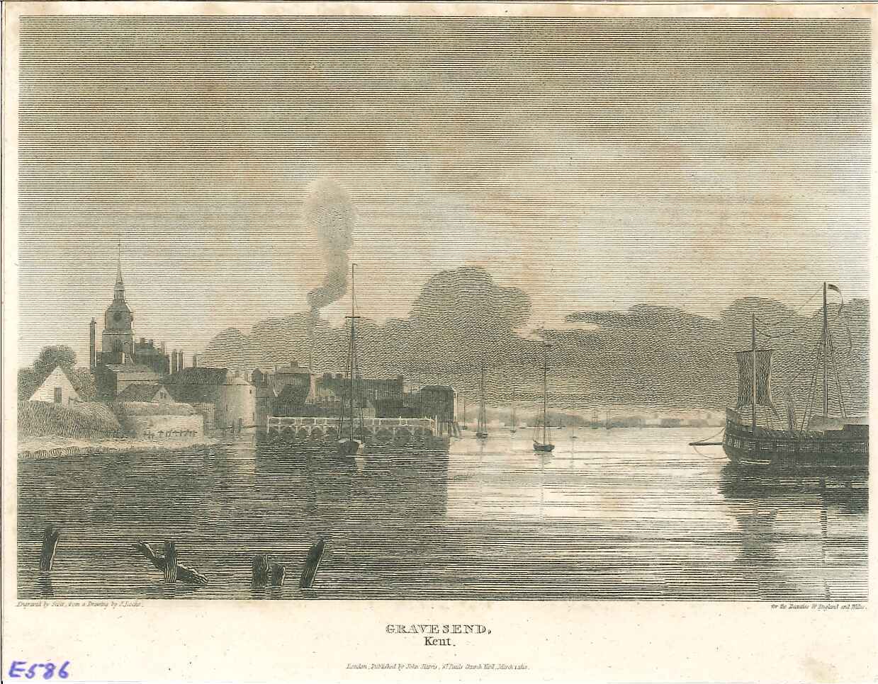 - DescriptionEngraved print of Gravesend seen from the waterfront; from a multi-volume illustrated set by Britton & Brayley. Taken from the multi-volume illustrated set by John Britton & Edward Wedlake Brayley, published over the period circa 1801-1815.
