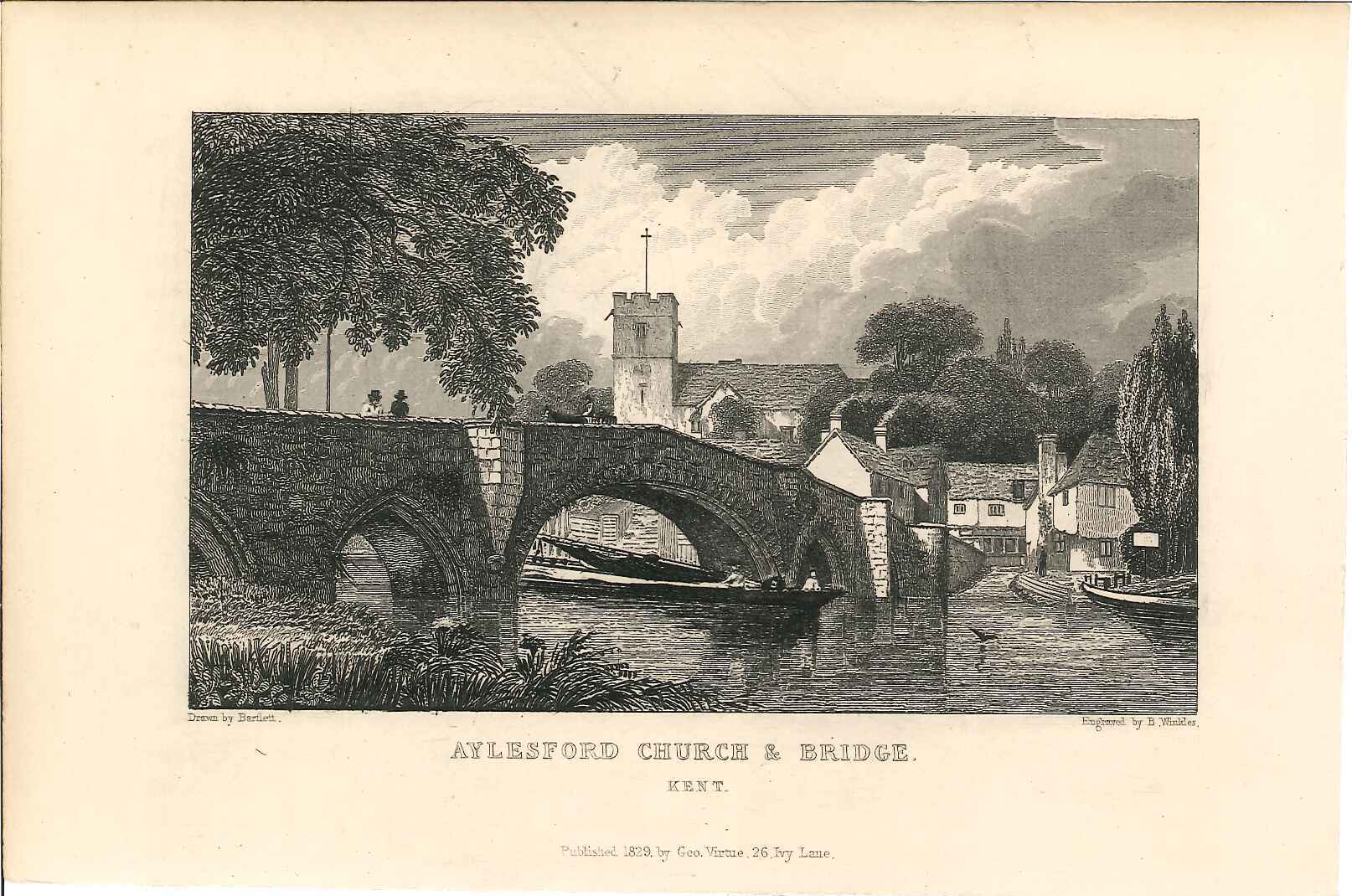- DescriptionEngraved print of Aylesford bridge, with the church behind; originally produced for the 'England's Topographer' series of Kent views (London 1828-1831). Originally produced for the "England's Topographer" series of Kent views (London 1828-1831).