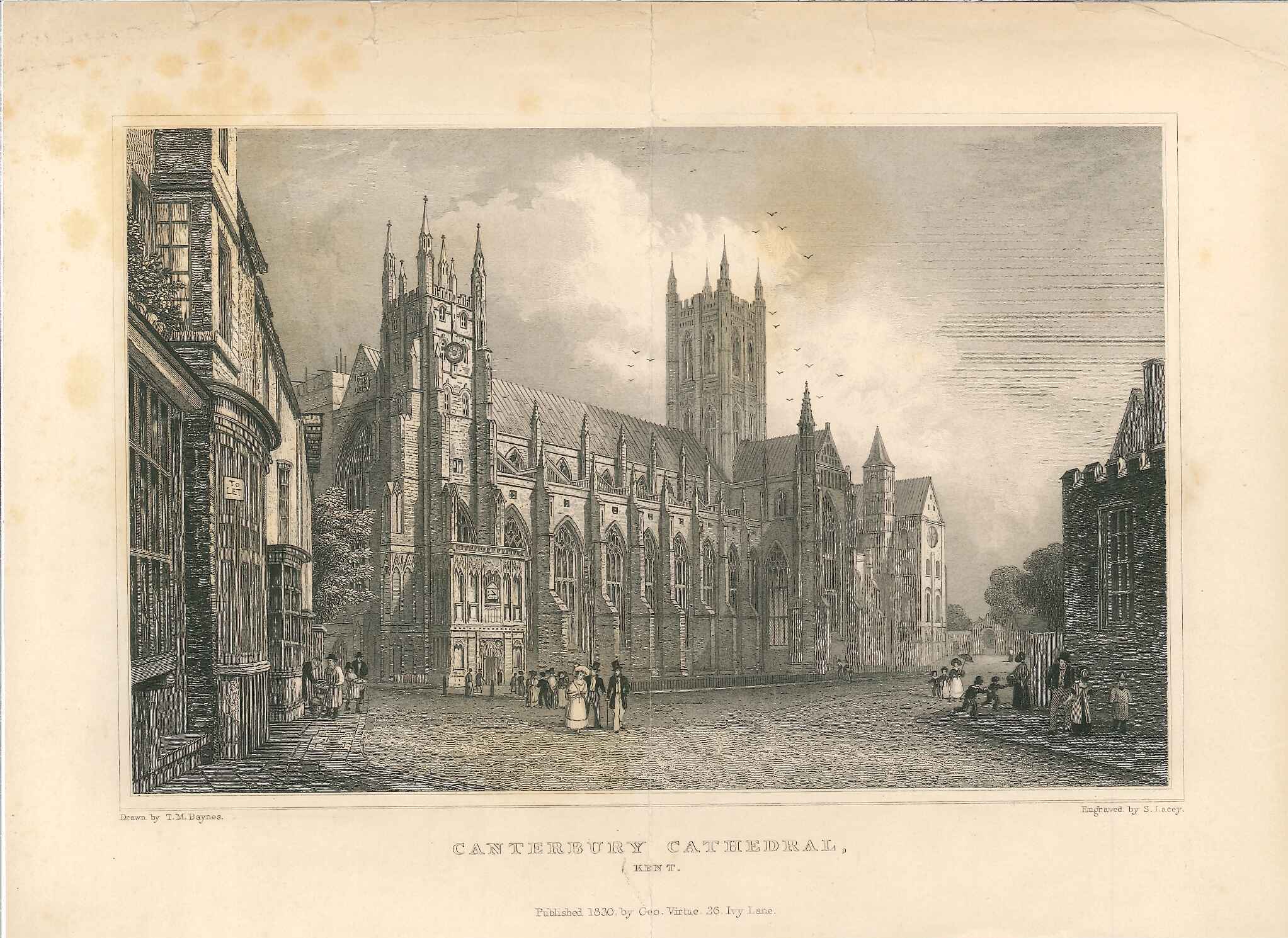- DescriptionPrint of Canterbury cathedral; shops & pedestrians in the cathedral precinct. Originally produced for the "England's Topographer" series of Kent views (London 1828-1831).