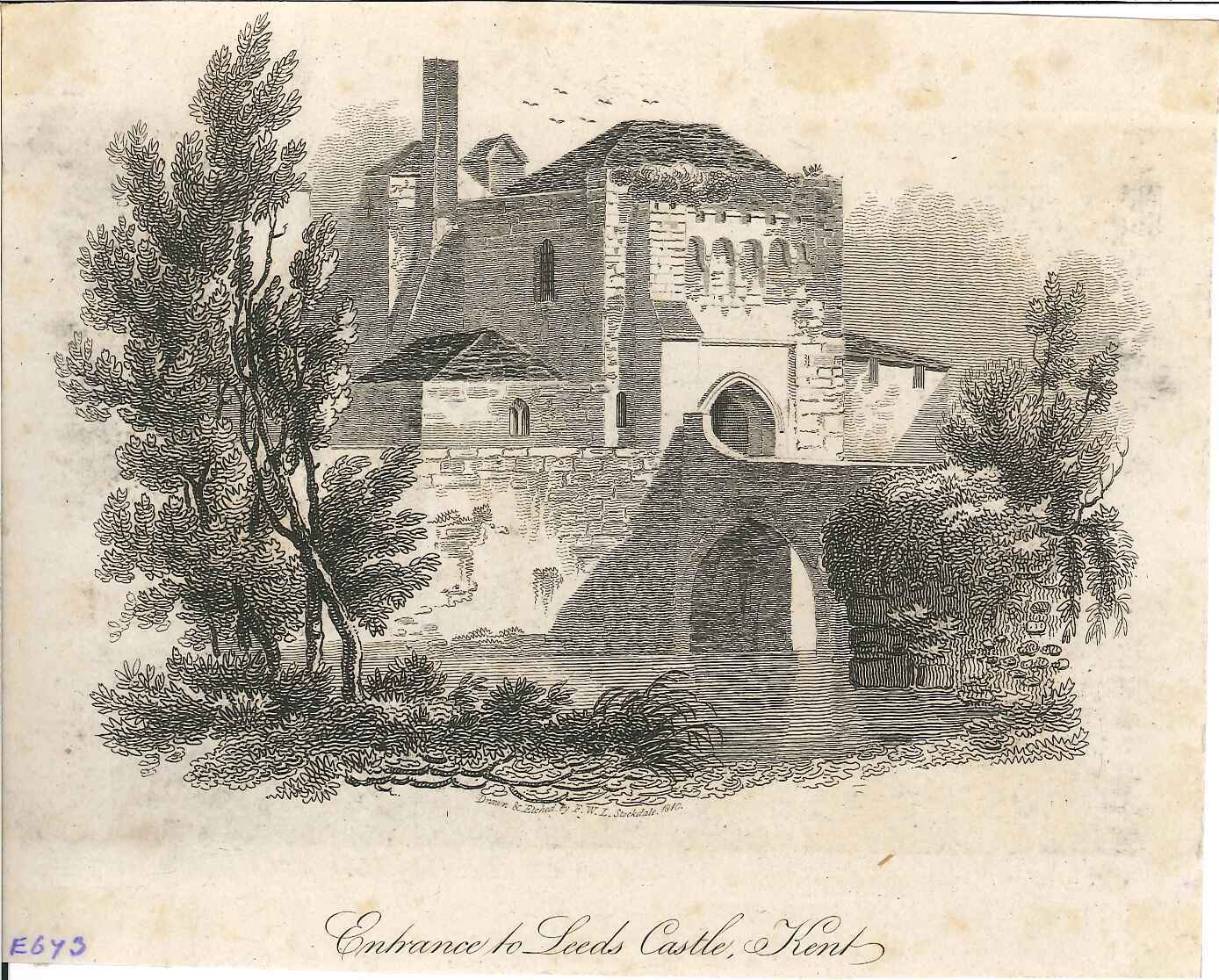Engraved print of Leeds castle gatehouse.