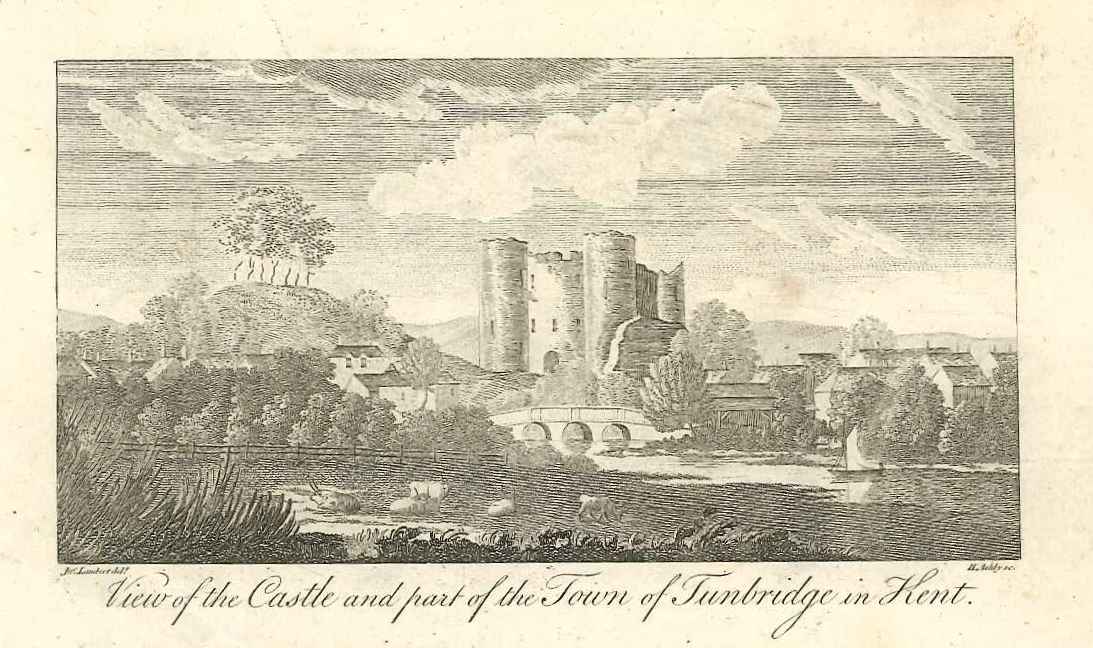 - DescriptionEngraved print of Tonbridge castle; seen from a distance with part of the town, including the bridge over the Medway; looks like another Sprange publication.