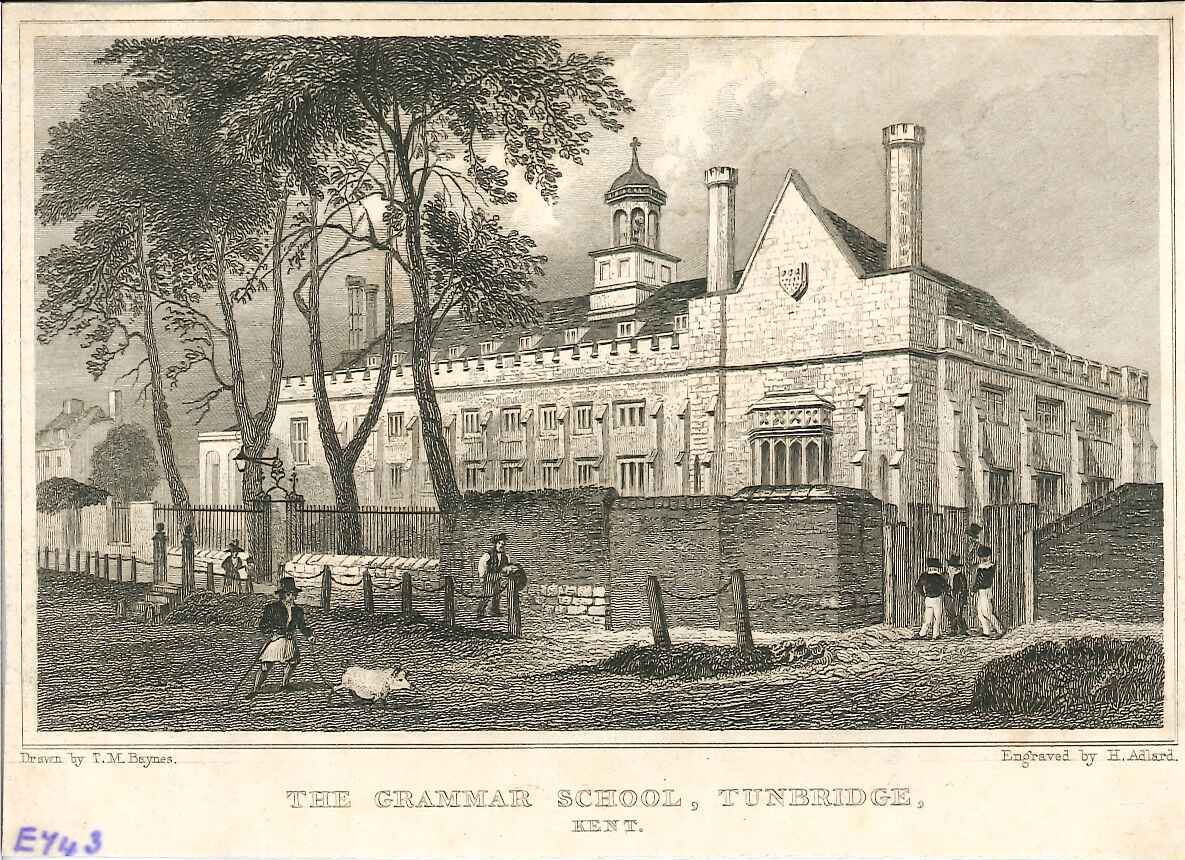- DescriptionPrint of a view of Tonbridge Grammar school; some pedestrians & schoolboys in the foreground. Originally produced for the "England's Topographer" series of Kent views (London 1828-1831).