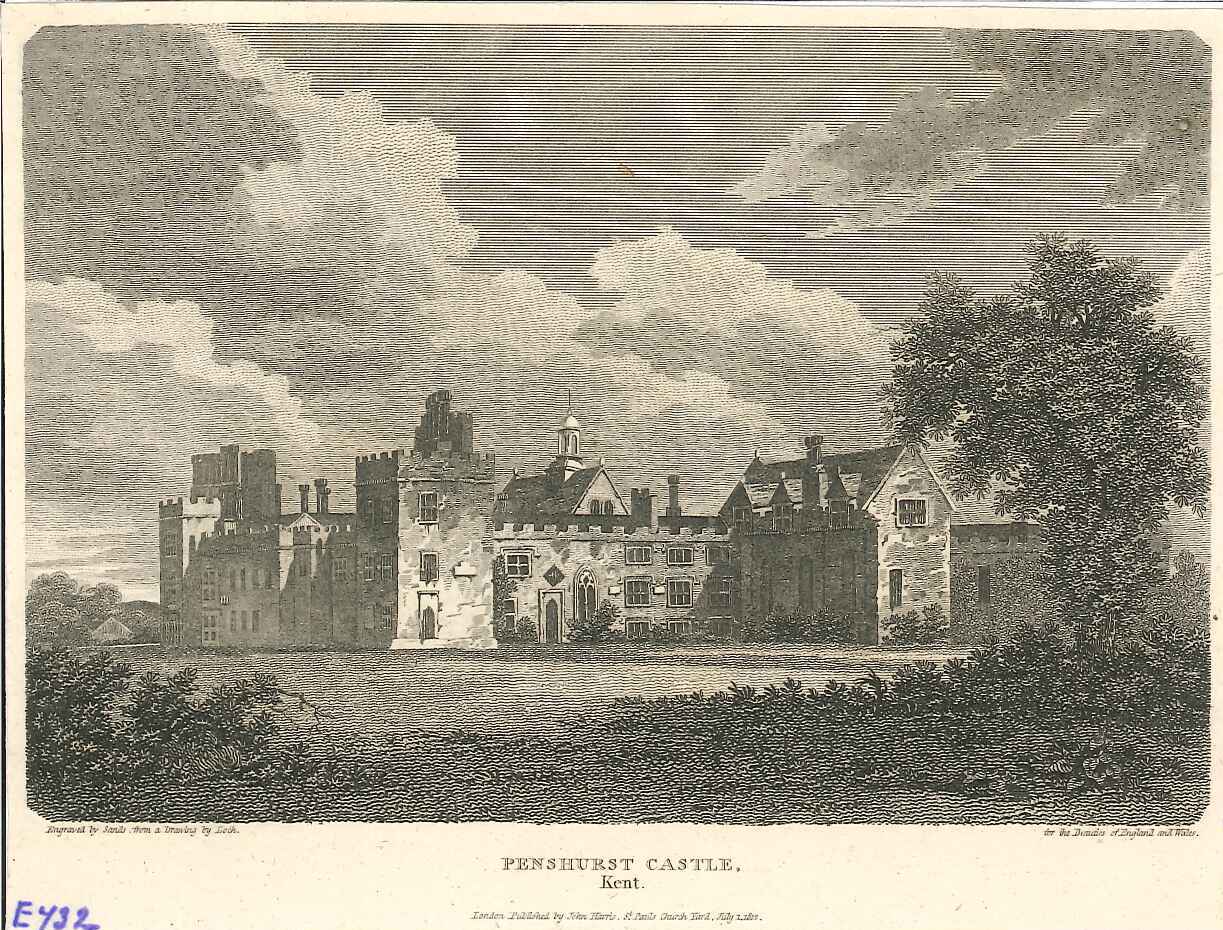 - DescriptionEngraved print of a view of Penshurst Place; seen across parkland; published for the book 'Beauties of England & Wales'.