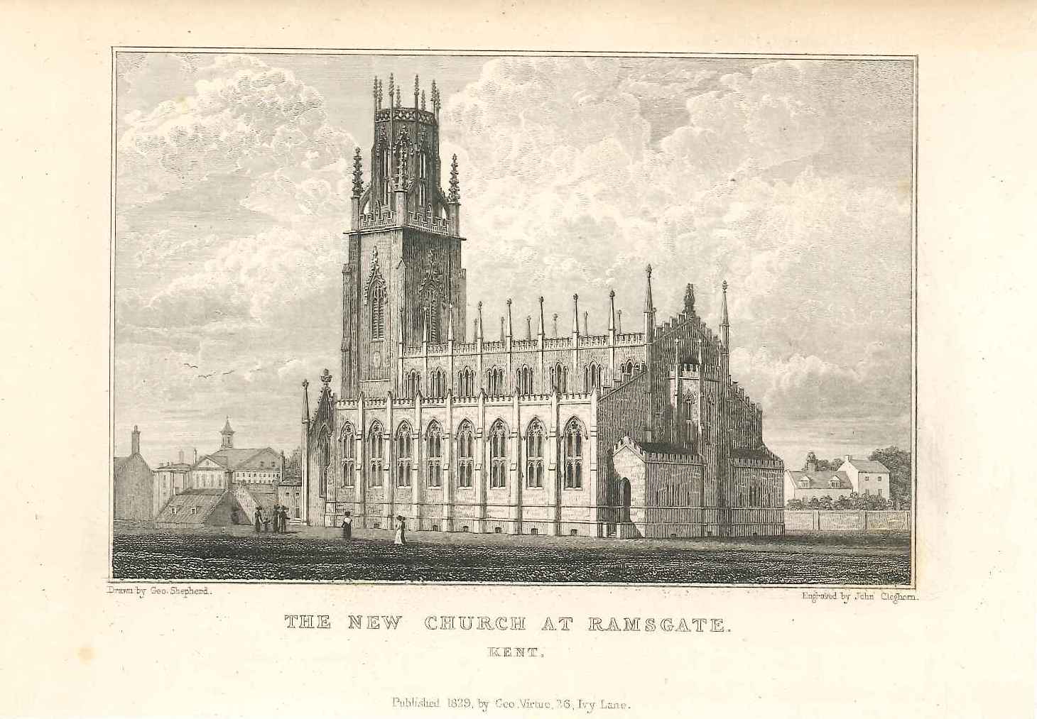 - DescriptionPrint of a view of the New Church at Ramsgate; various pedestrians in the foreground. Originally produced for the "England's Topographer" series of Kent views (London 1828-1831).