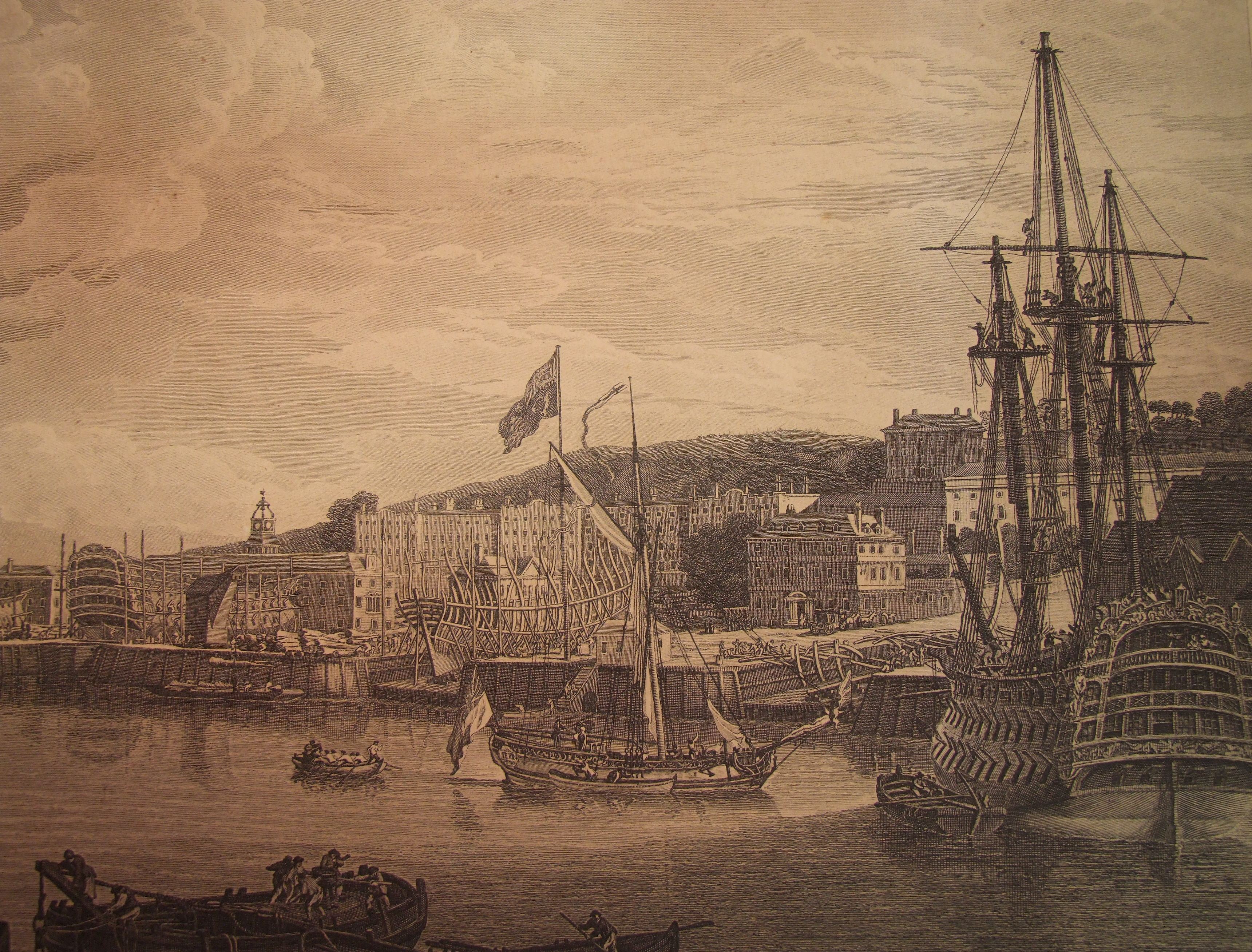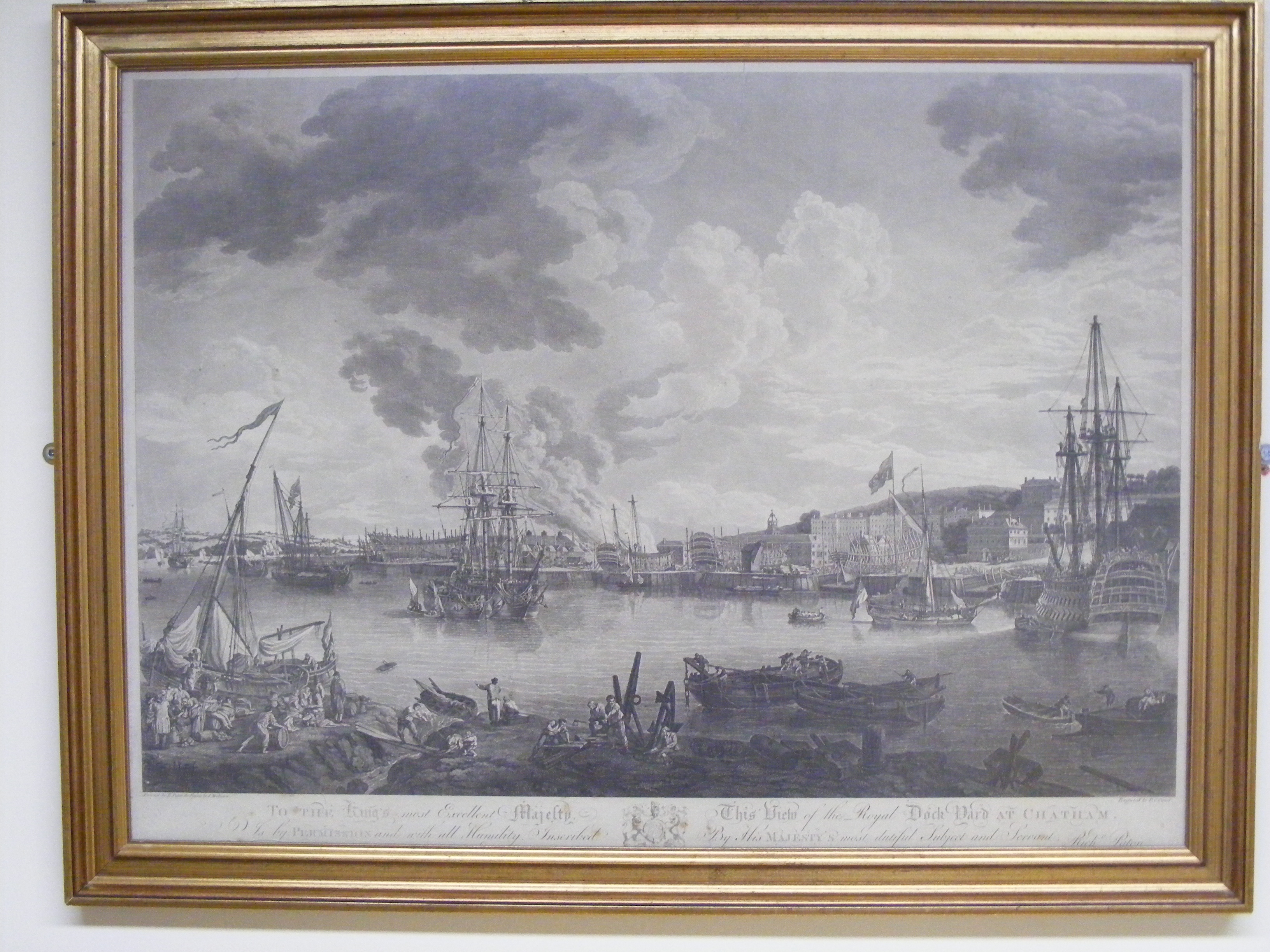 - Descriptionephemera; engraving of a view of Chatham Dockyard; published 1st July 1793; an earlier edition came out in 1775; busy scene, many ships, figures in the foreground. Glazed & framed. Currently located on the wall outside the toilets in the Guildhall.