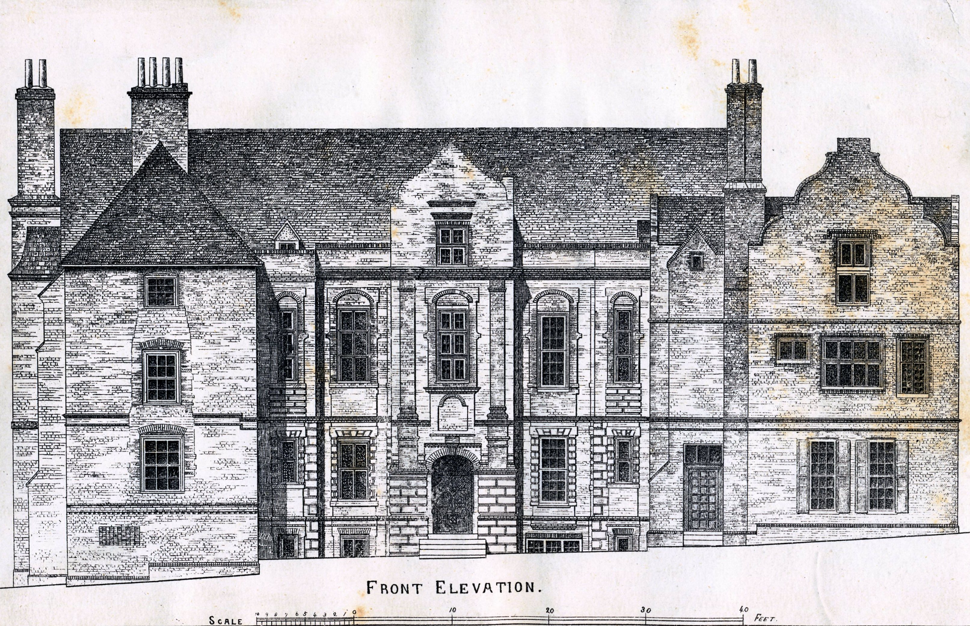 - DescriptionPrint of a front elevation of Restoration House in Rochester by Mr H Baker; scale drawing, presumably for an architectural journal or similar. Glazed & framed.