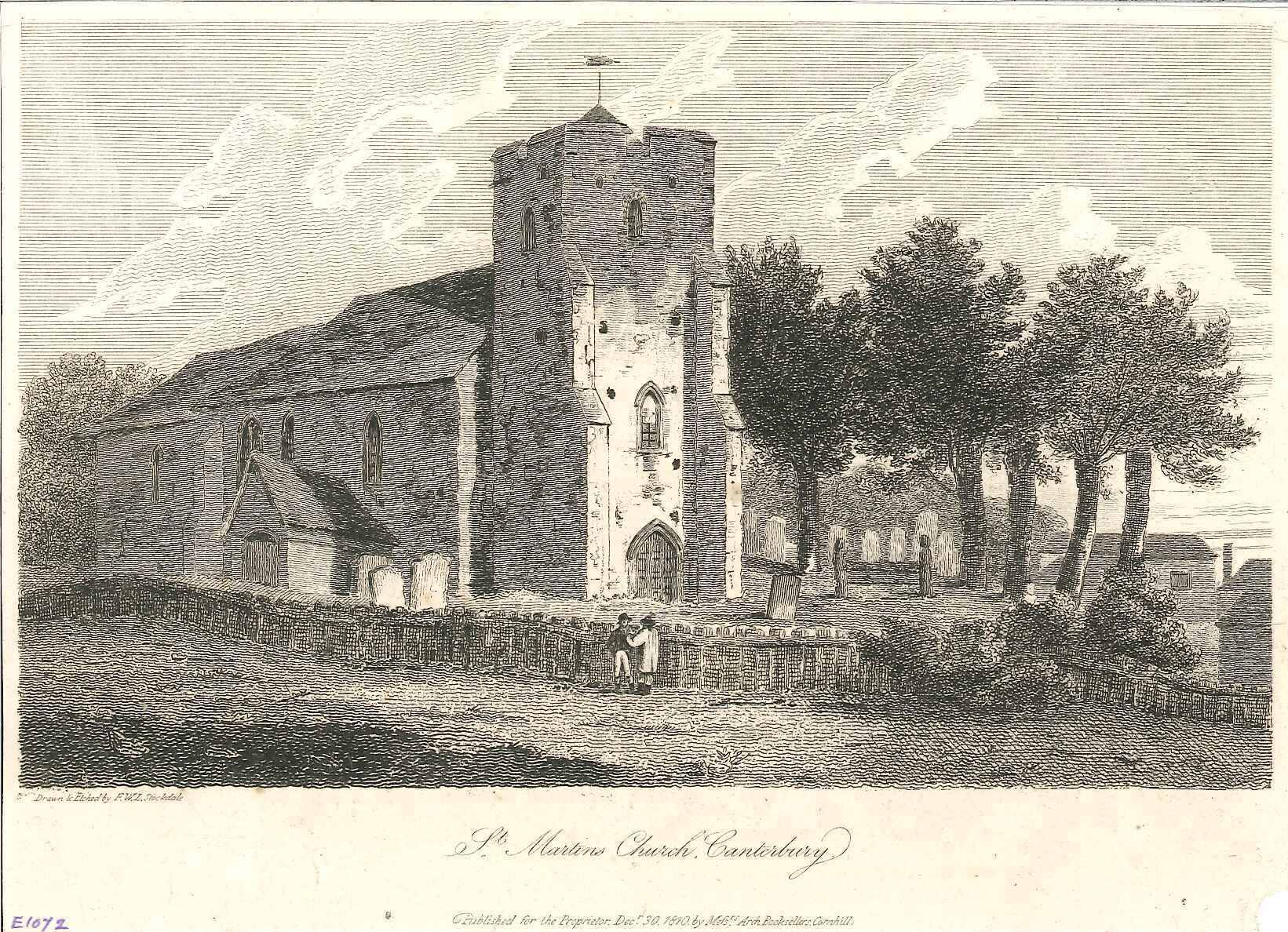 Engraved print of St Martin's church, Canterbury.