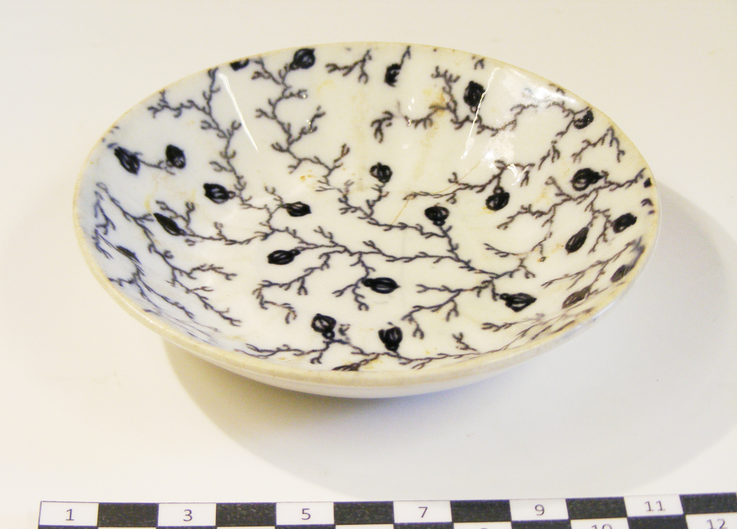 - Descriptionsaucer for teacup; white moulded porcelain saucer; seal mark on base; overall hand-painted design in black of trailing branches with numerous seed heads; a cup for this saucer is A6602. Probably Japanese, made for the European market.