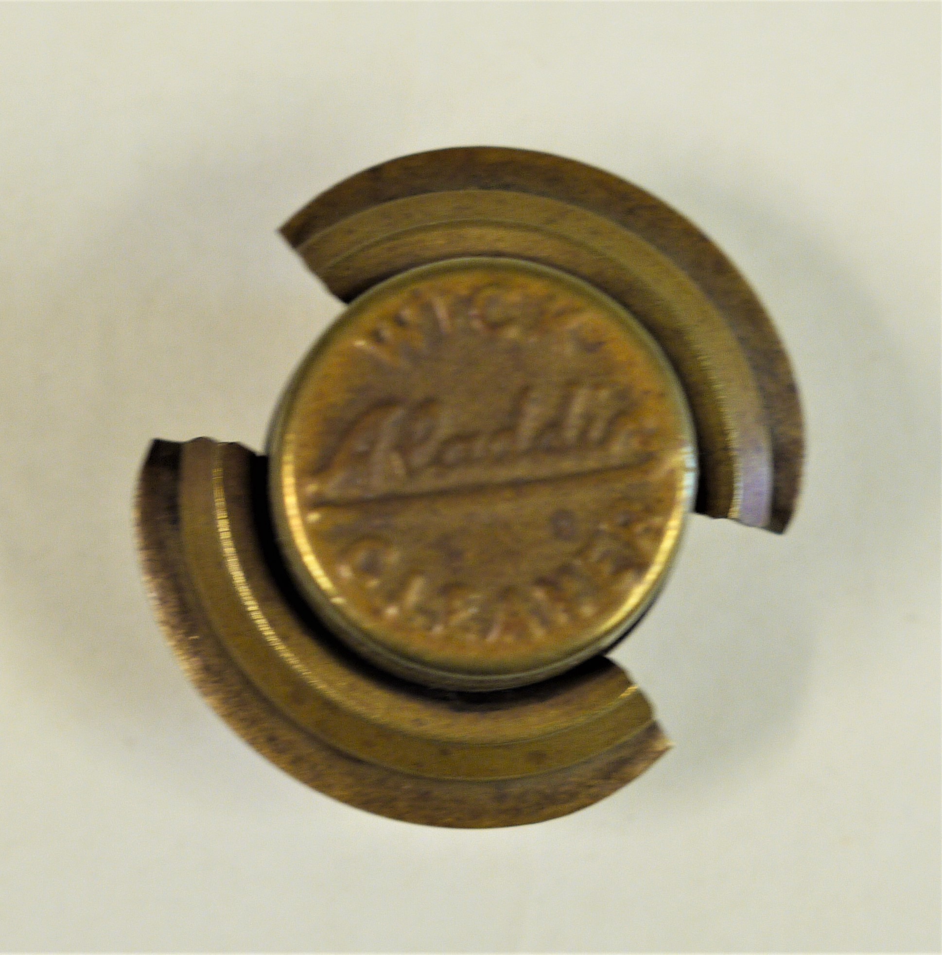 - DescriptionWick trimmer; oil lamp wick trimmer; small hand-held circular cutting device used for trimming away carbonised areas of oil lamp wicks to improve burning brightness.