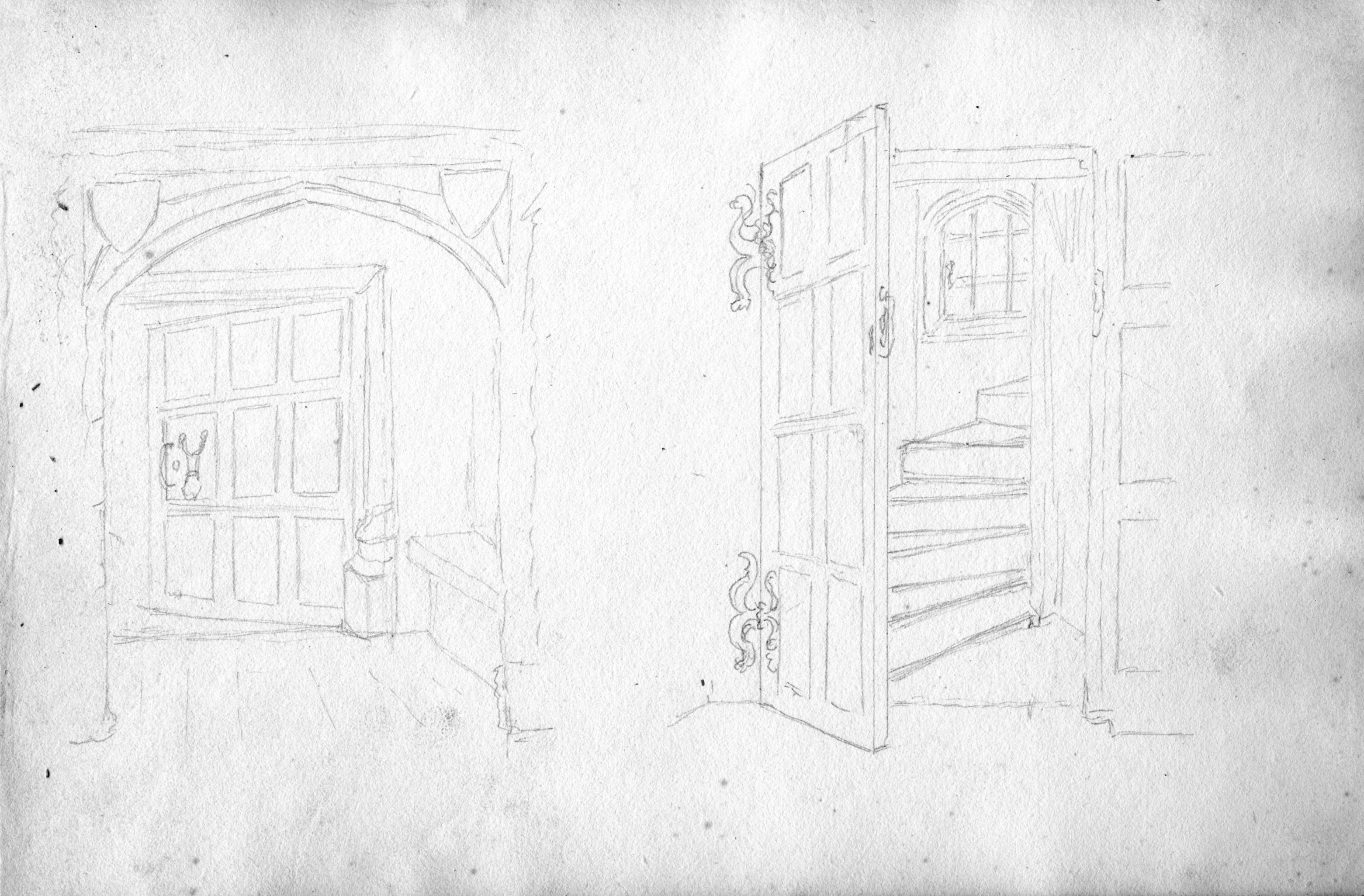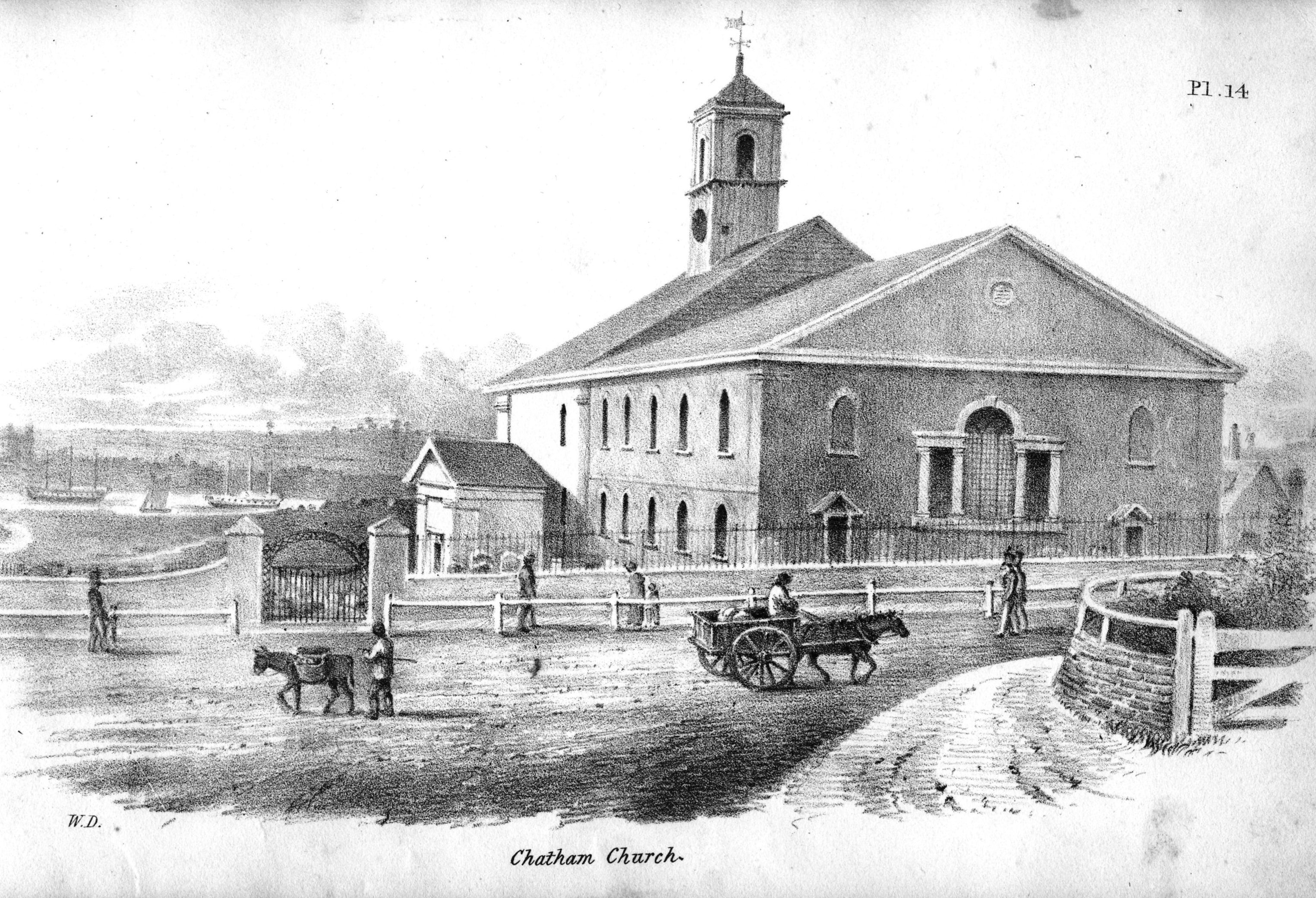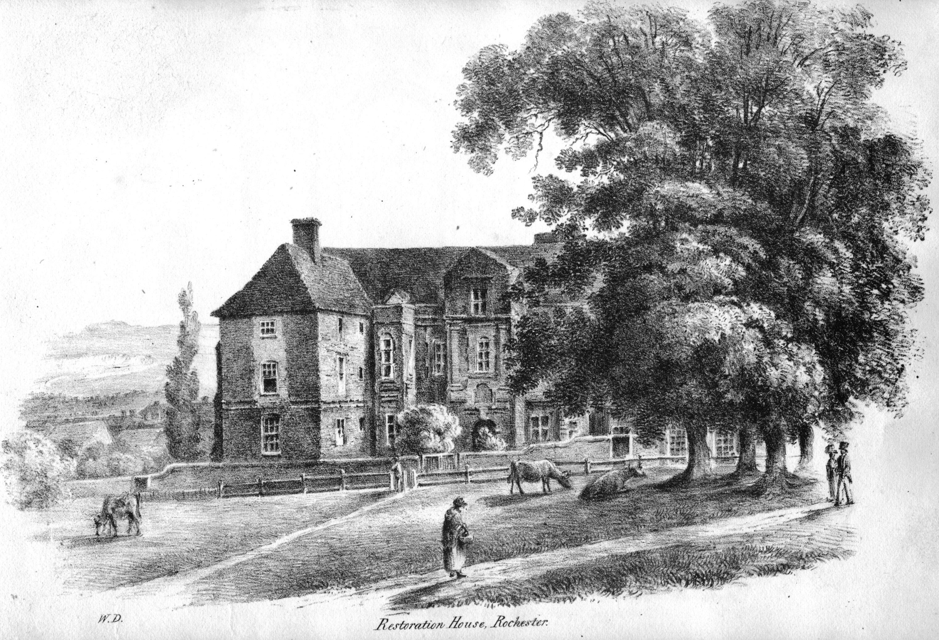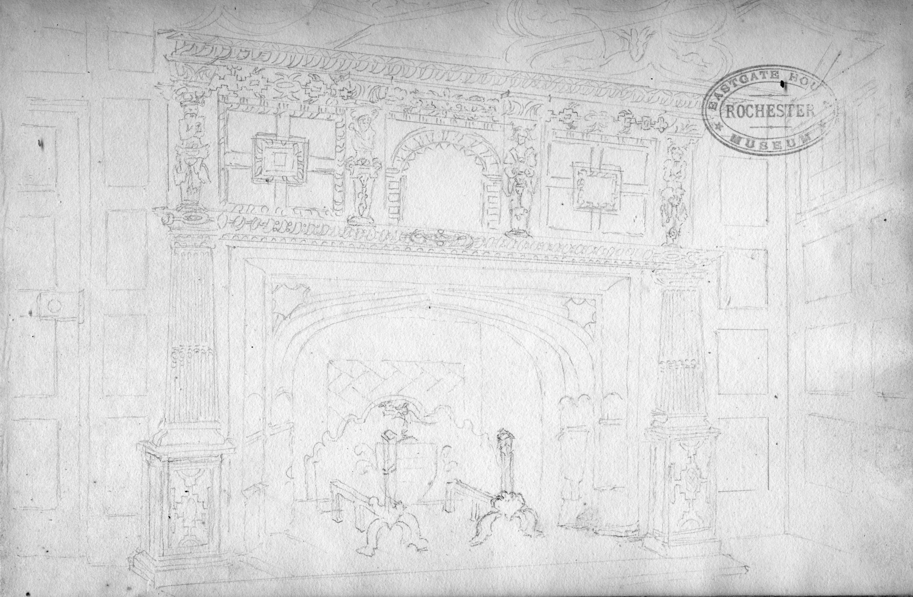 Book of lithographic prints of sketches of Rochester by William Dadson, 1825; in later binding; incomplete set: (no title page), plates no.1 to 16; presented by the artist Emilie Carlyon, who has added some faint sketches of Eastgate House interior. Some light staining & fraying of print edges. There seem to have been over 20 prints in this series originally.