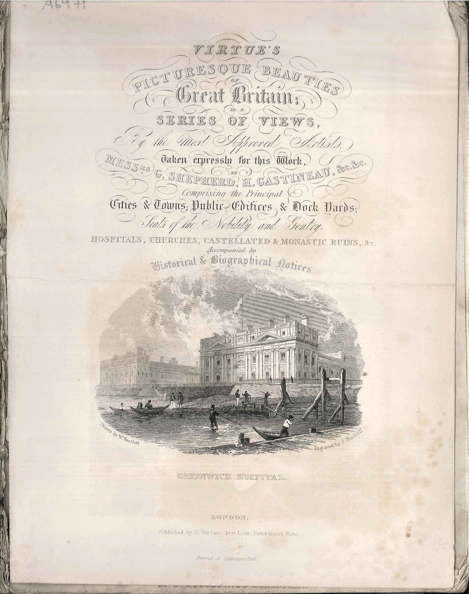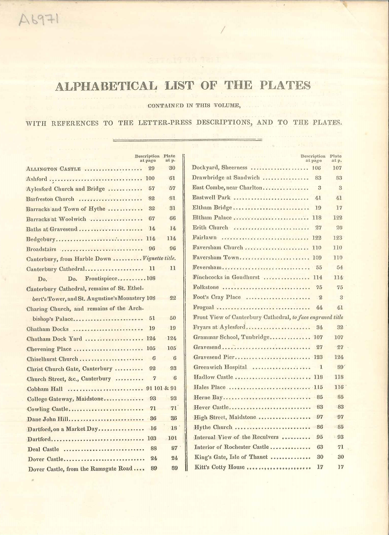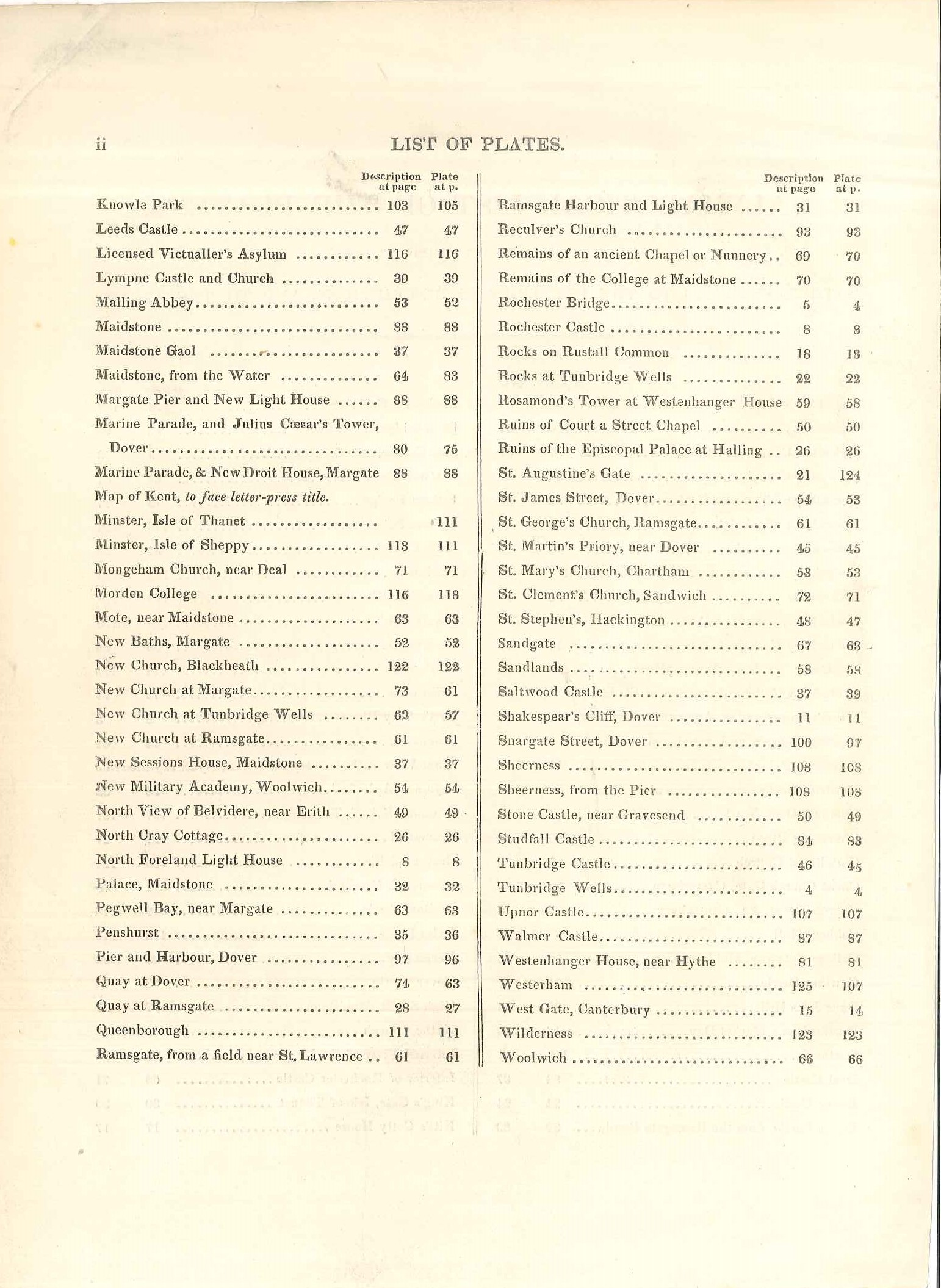 Book of engraved prints of Kent views; 'The Picturesque Beauties of Great Britain' published by George Virtue; various prints by different artists & engravers (1828-1831), with accompanying text. Spine & covers gone, missing some pages at the beginning and the end, this copy has pages 6 to 122 surviving; overall light staining & foxing, but the engravings are generally in a good condition.