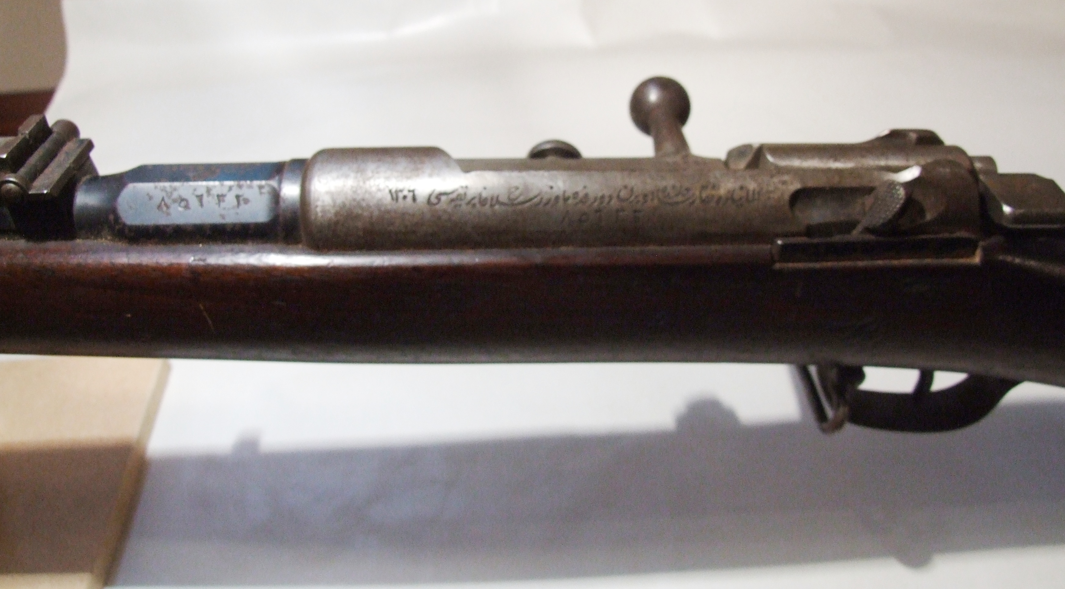 - DescriptionMauser Model 87 rifle, Turkish; 9.5mm; good condition, fully working mechanism; light pitting on metalwork; folding sights with tubular under barrel magazine. Turkish markings. Presumably a trophy from the Dardanelles campaign during World War One. This or A1110 possibly item given by Mrs Cobb in March 1937?