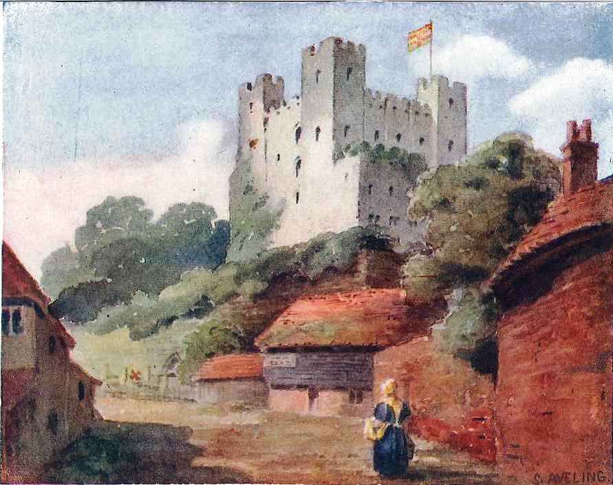 - DescriptionColour print of a watercolour of Rochester castle, with the King's Head stables in front; printed as a postcard, also reproduced in the 'In Dickens Land' series.