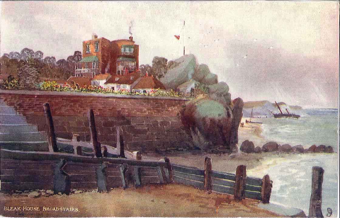 - DescriptionColour print of a watercolour of Bleak House, Broadstairs (formerly known as 'Fort House'); printed as a postcard; shows the building that Charles Dickens lived & worked in during family summer holidays over the period 1837-1859.