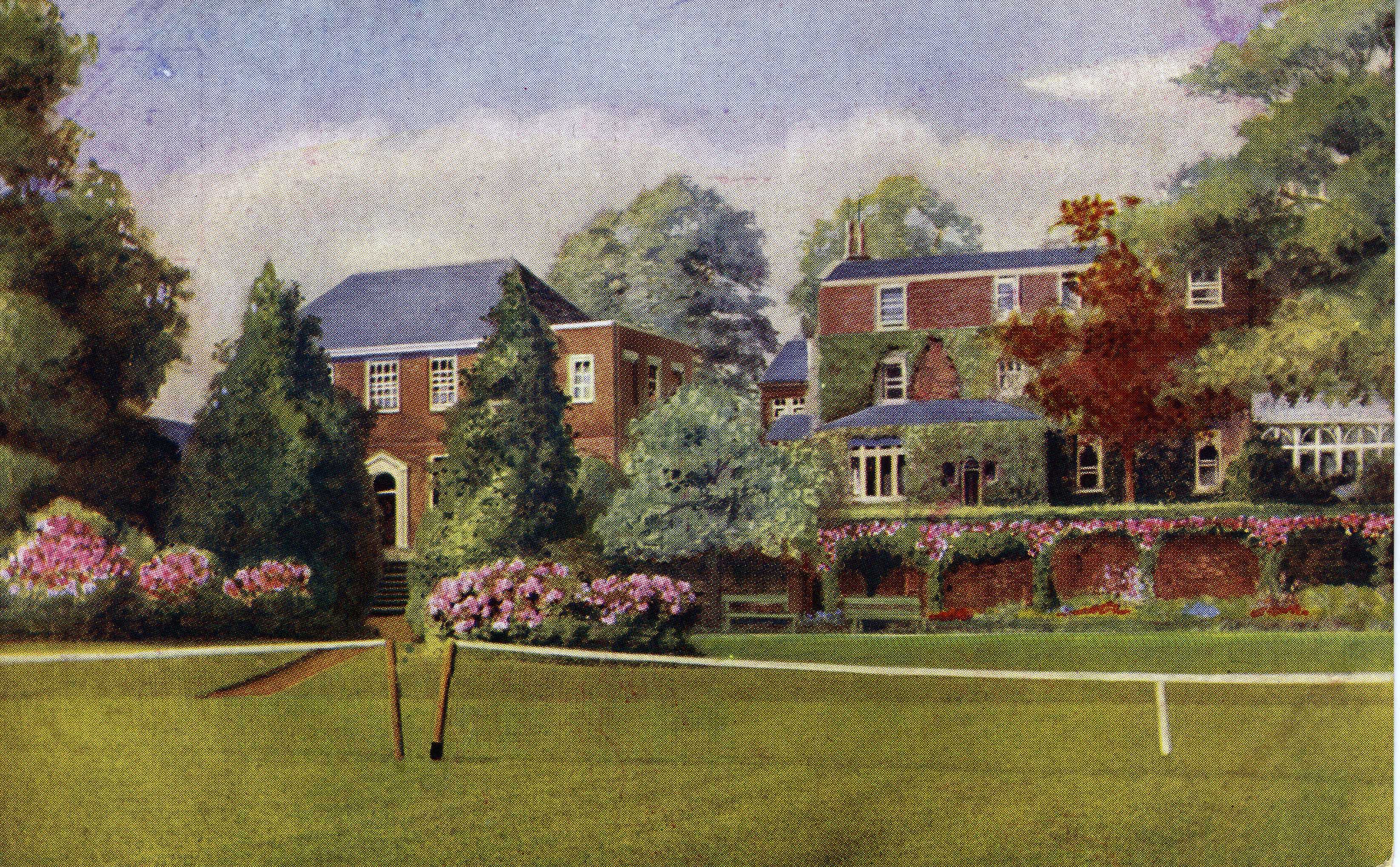 - DescriptionPostcard; colour printed image of a watercolour of Gad's Hill Place, near Rochester, formerly the home of Charles Dickens; shows a view from the rear, across the tennis courts in the garden; view is post-1924.