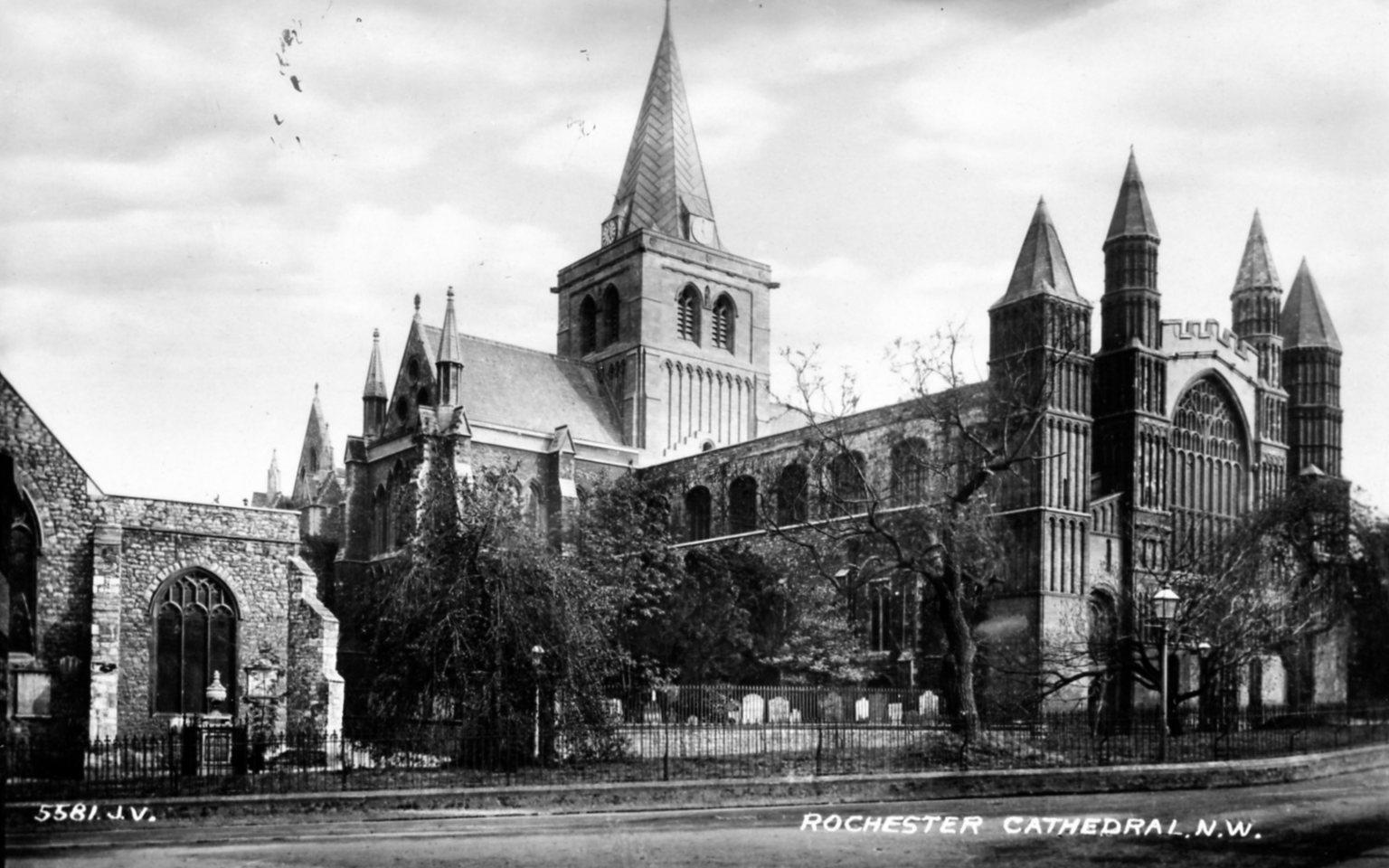 - DescriptionPostcard; monochrome photographic image; view of Rochester cathedral from Boley Hill; to the left can be seen part of St Nicholas' church.